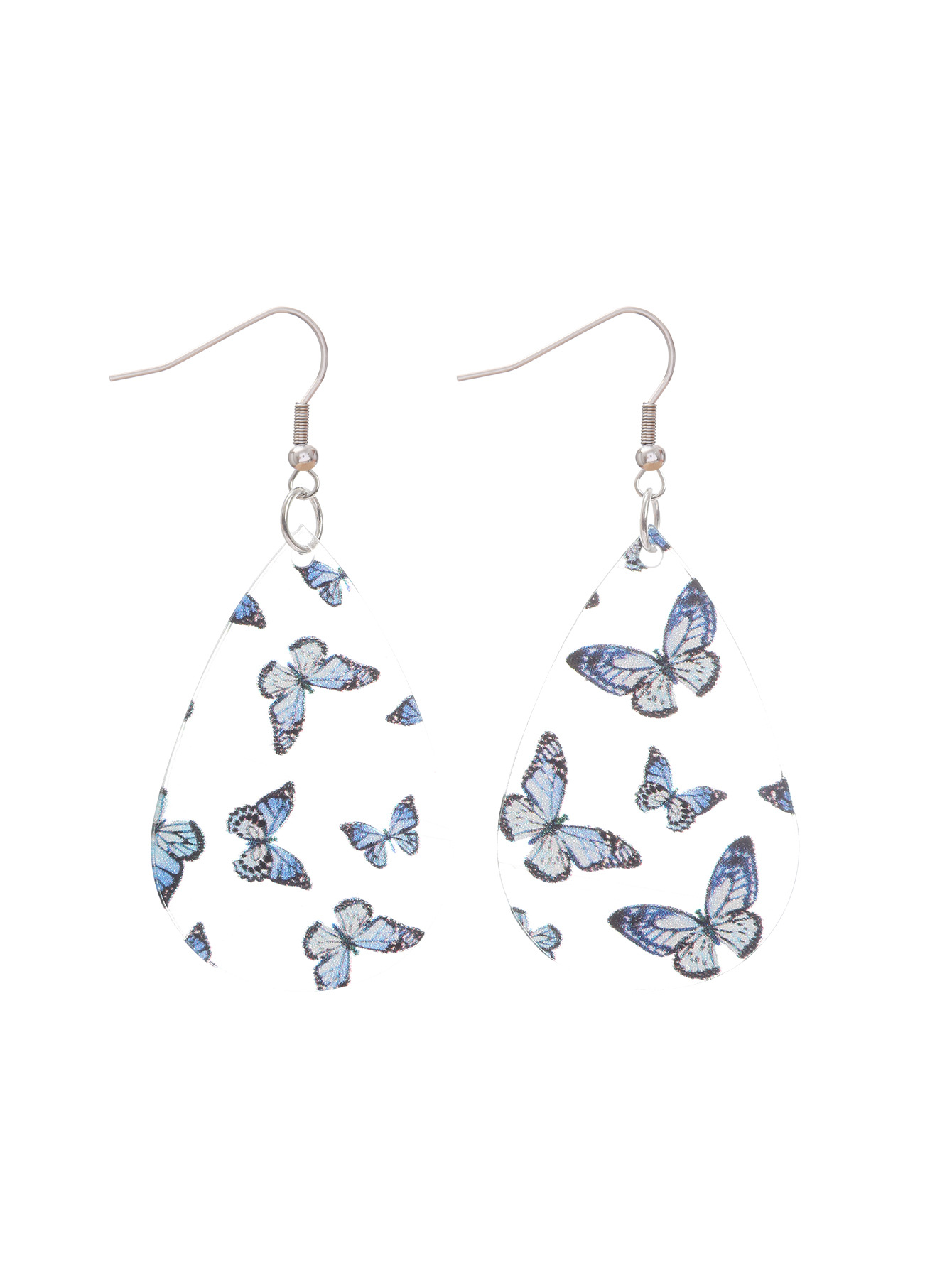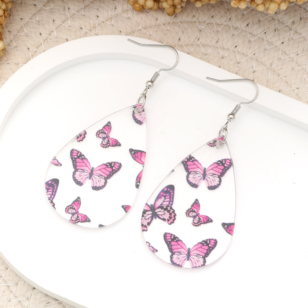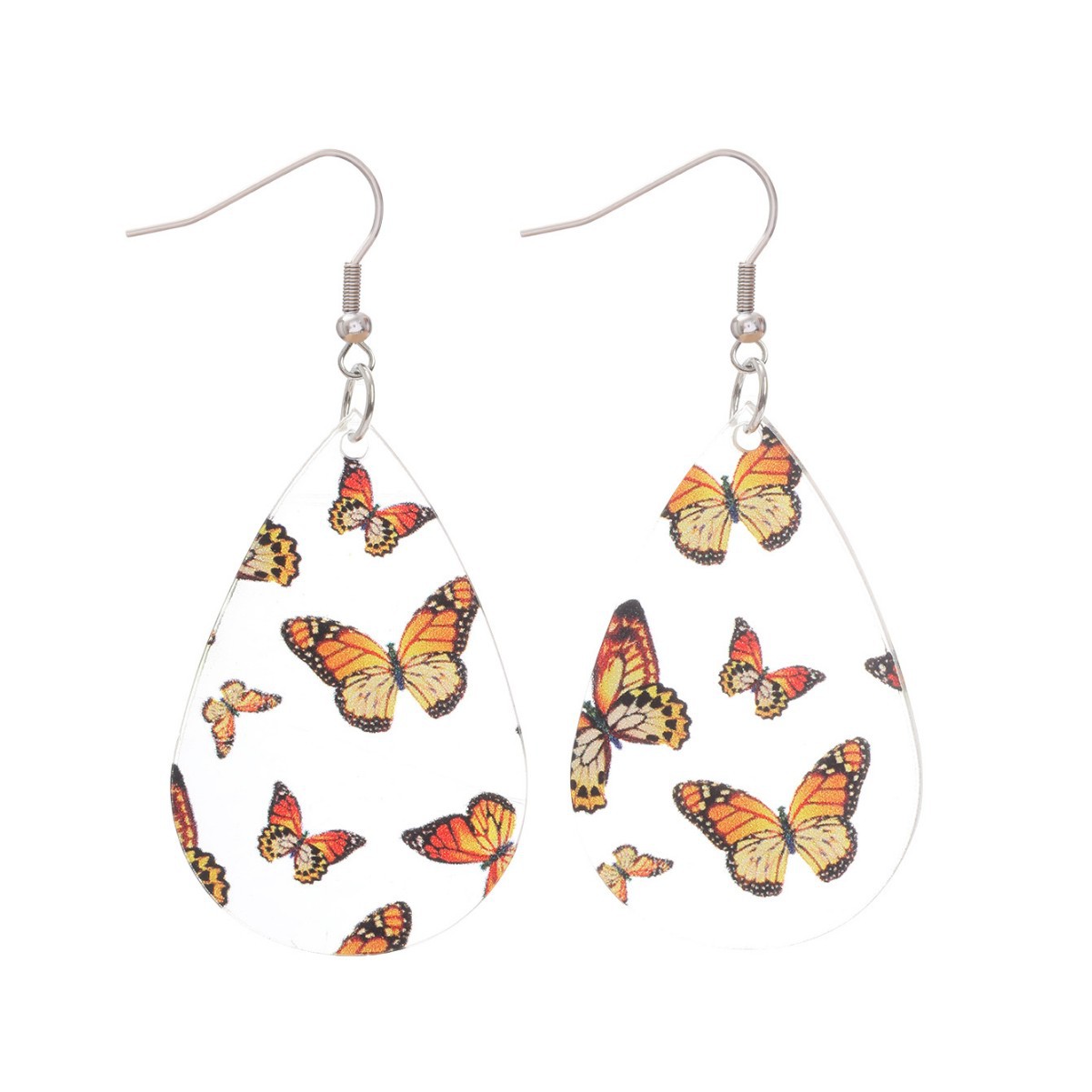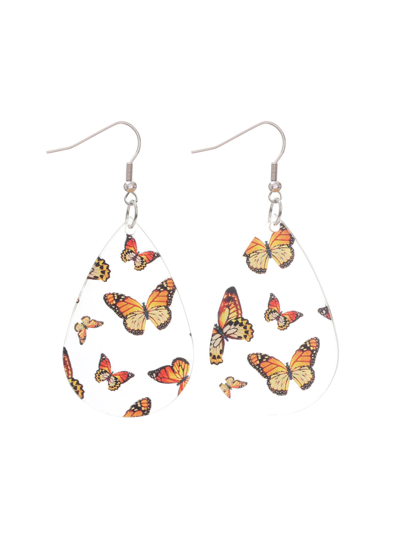 新品清新甜美水滴形耳环蝴蝶印花透明亚克力耳坠秋季感恩节礼物