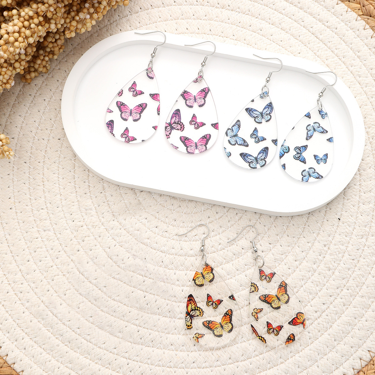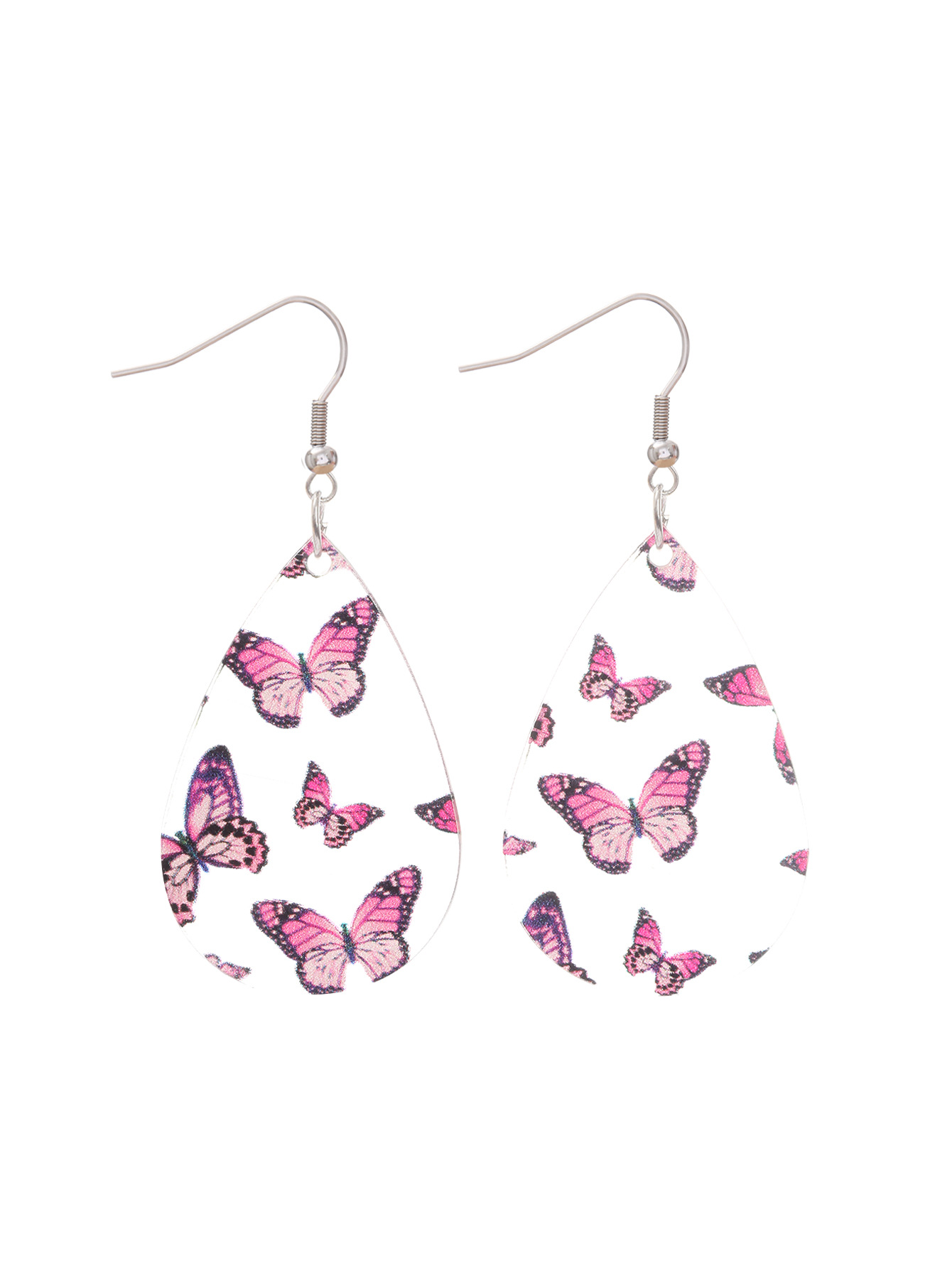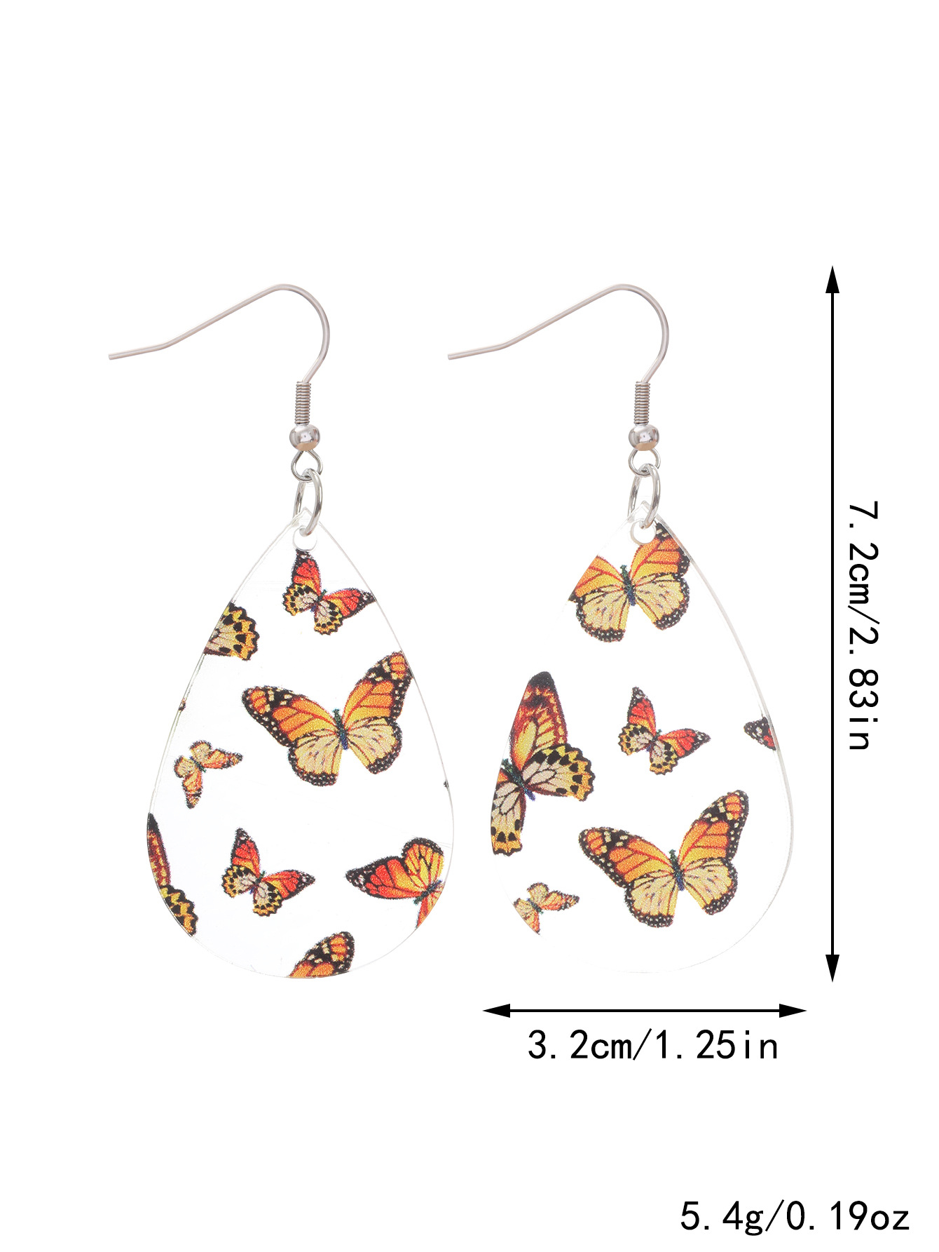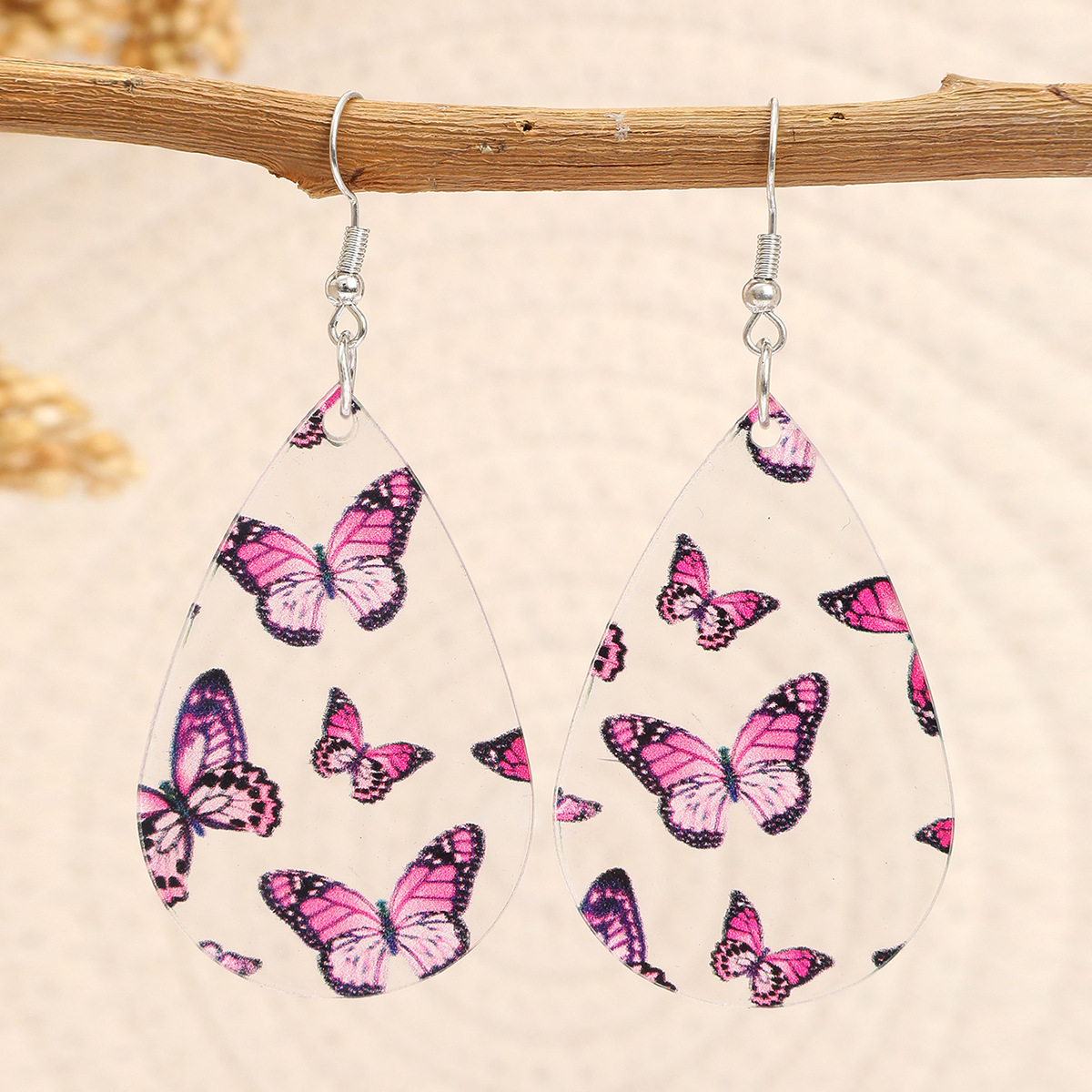 新品清新甜美水滴形耳环蝴蝶印花透明亚克力耳坠秋季感恩节礼物