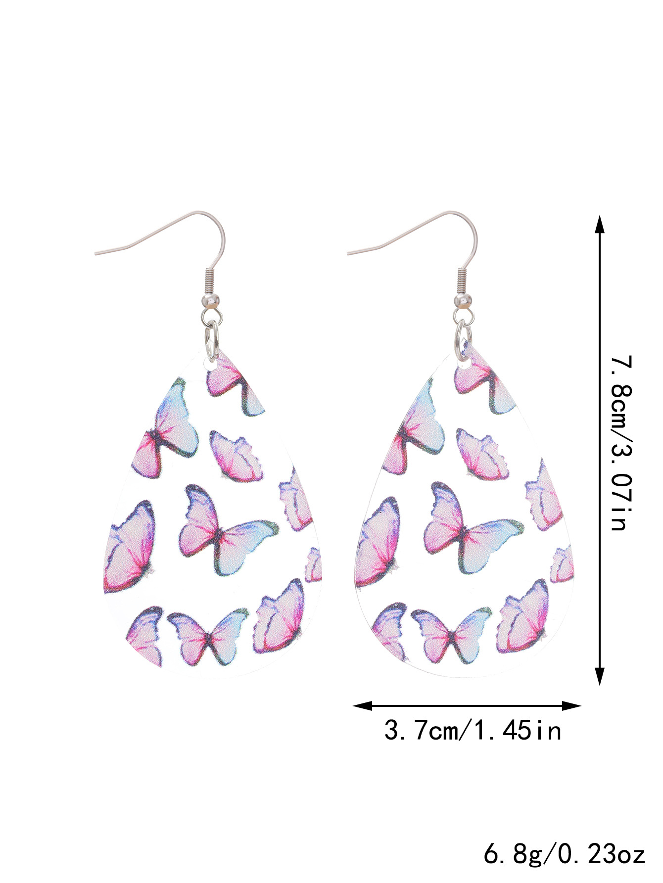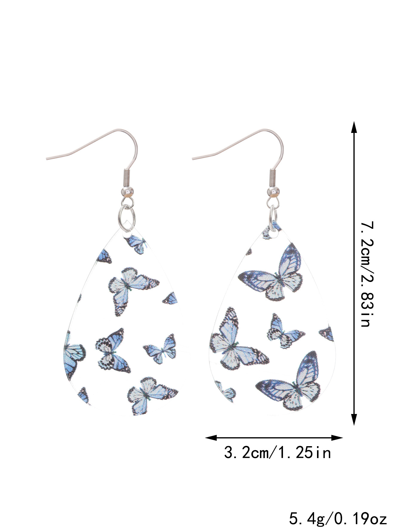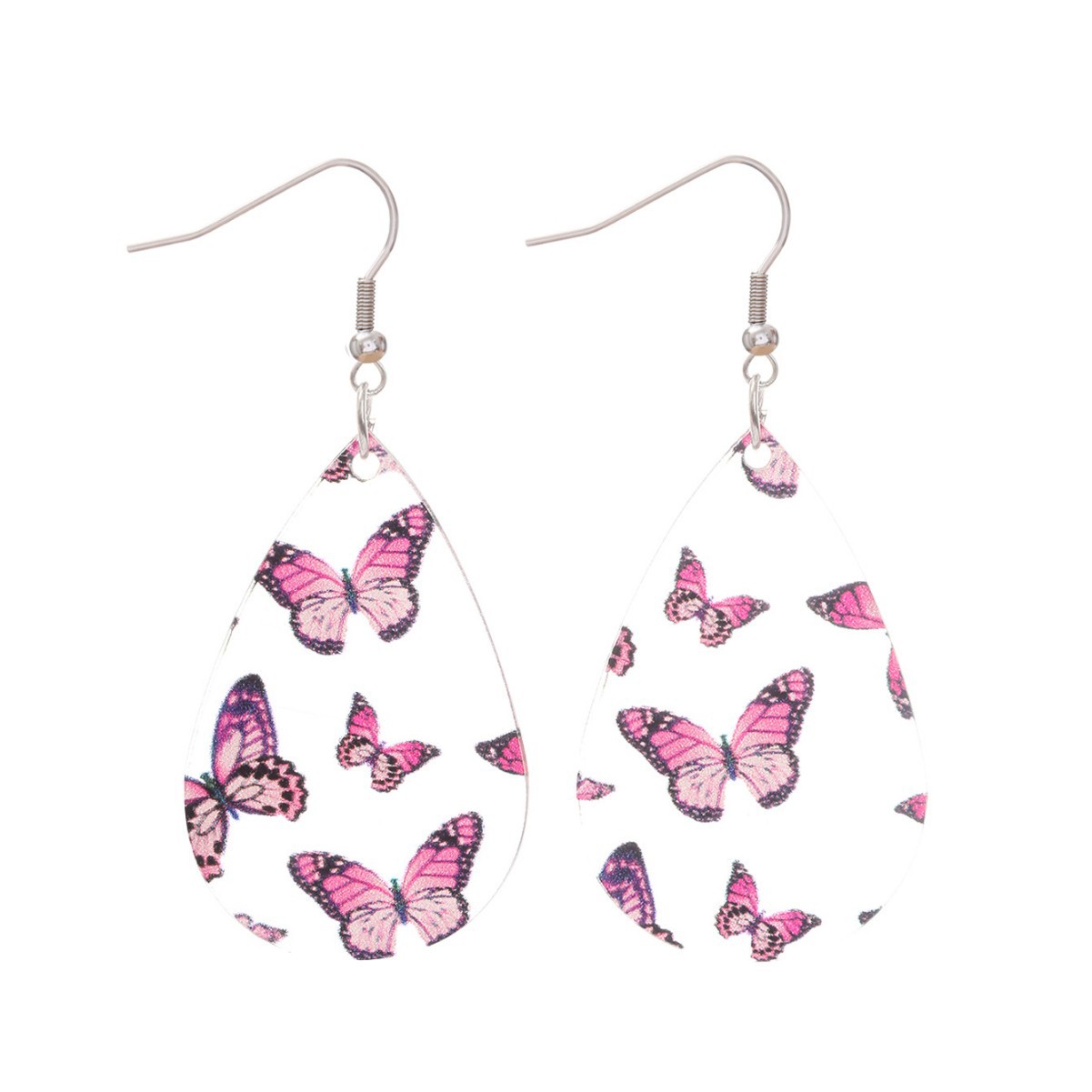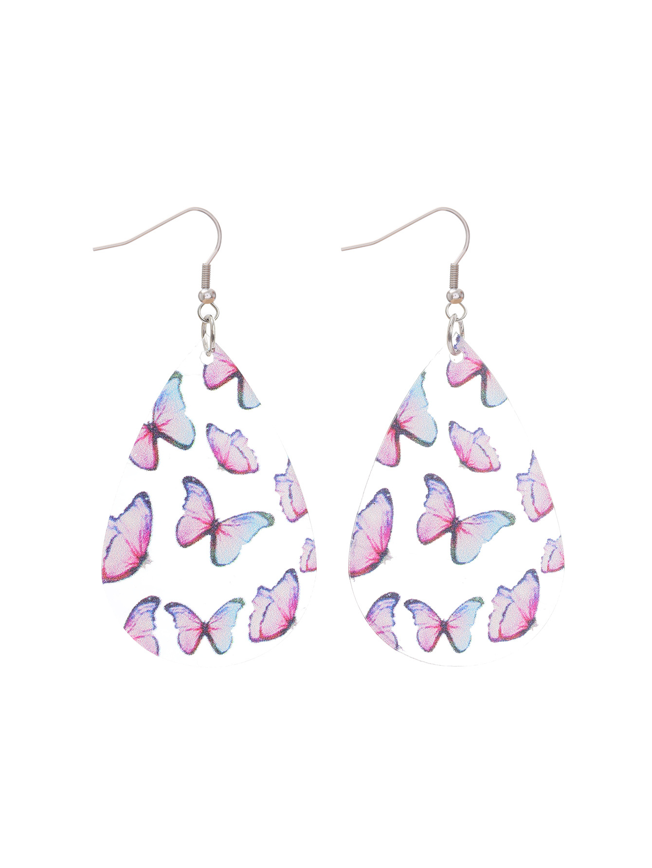 新品清新甜美水滴形耳环蝴蝶印花透明亚克力耳坠秋季感恩节礼物