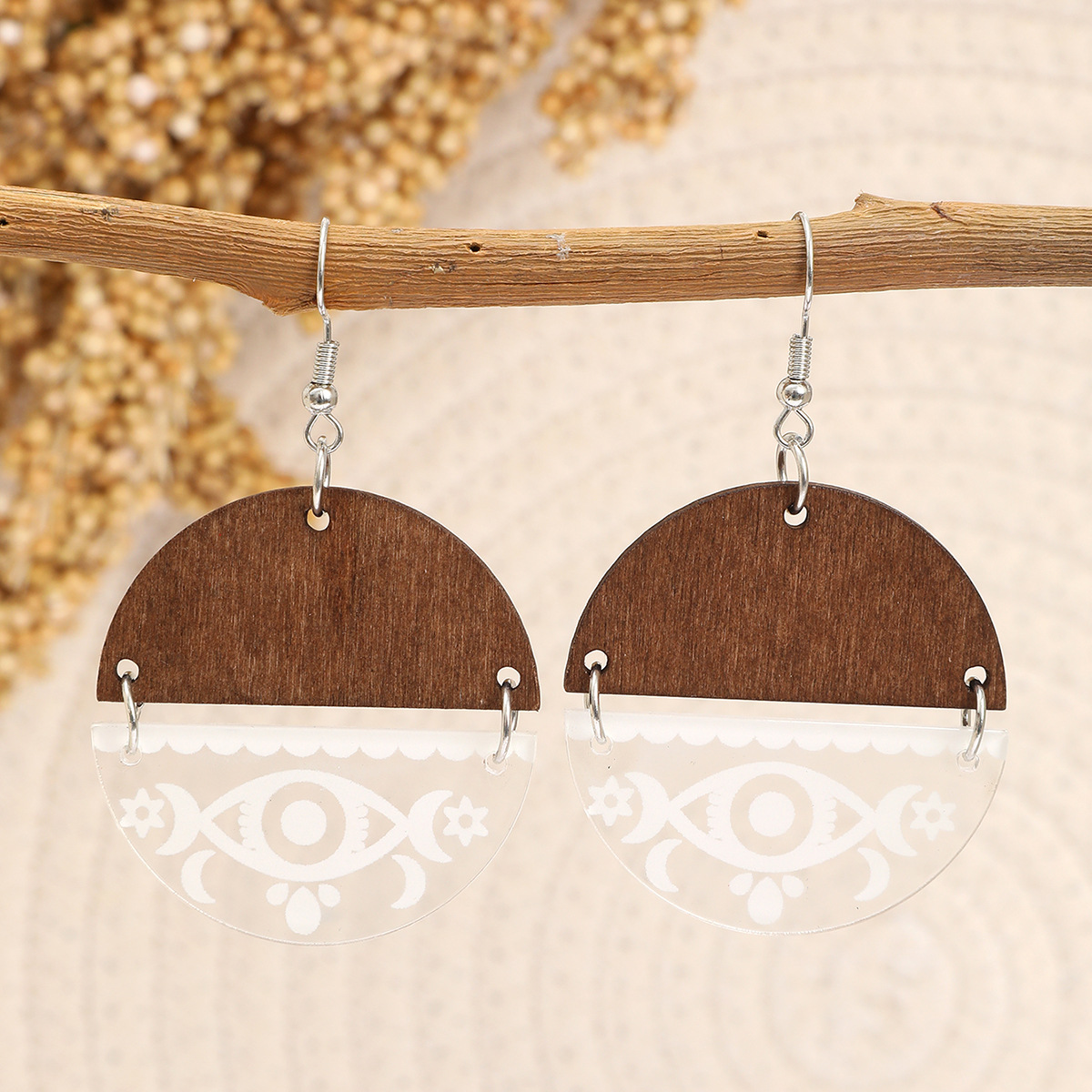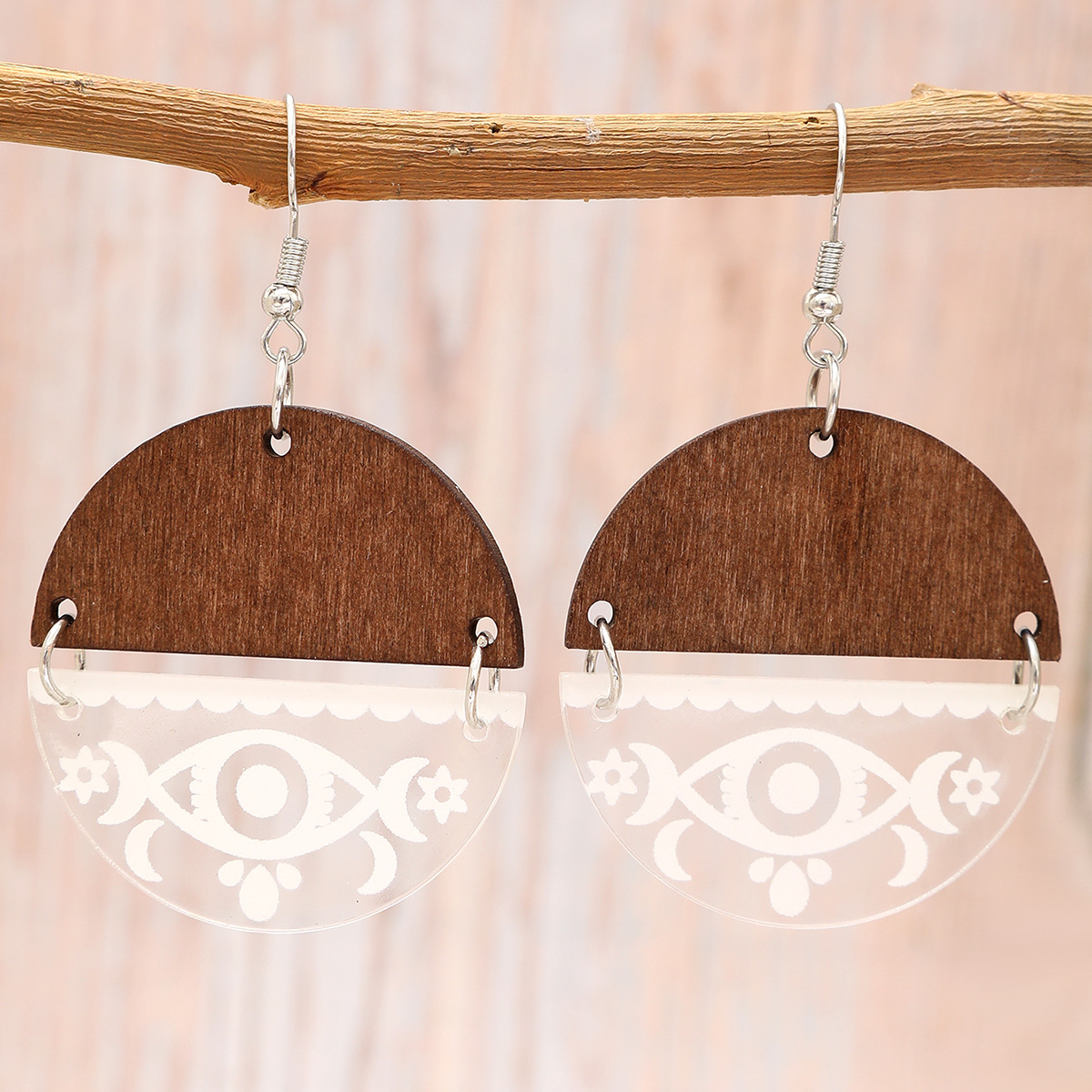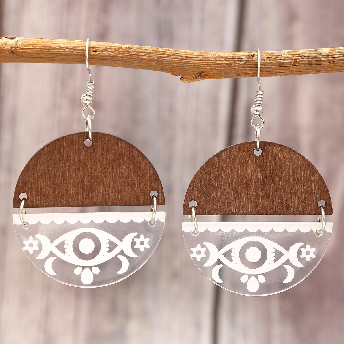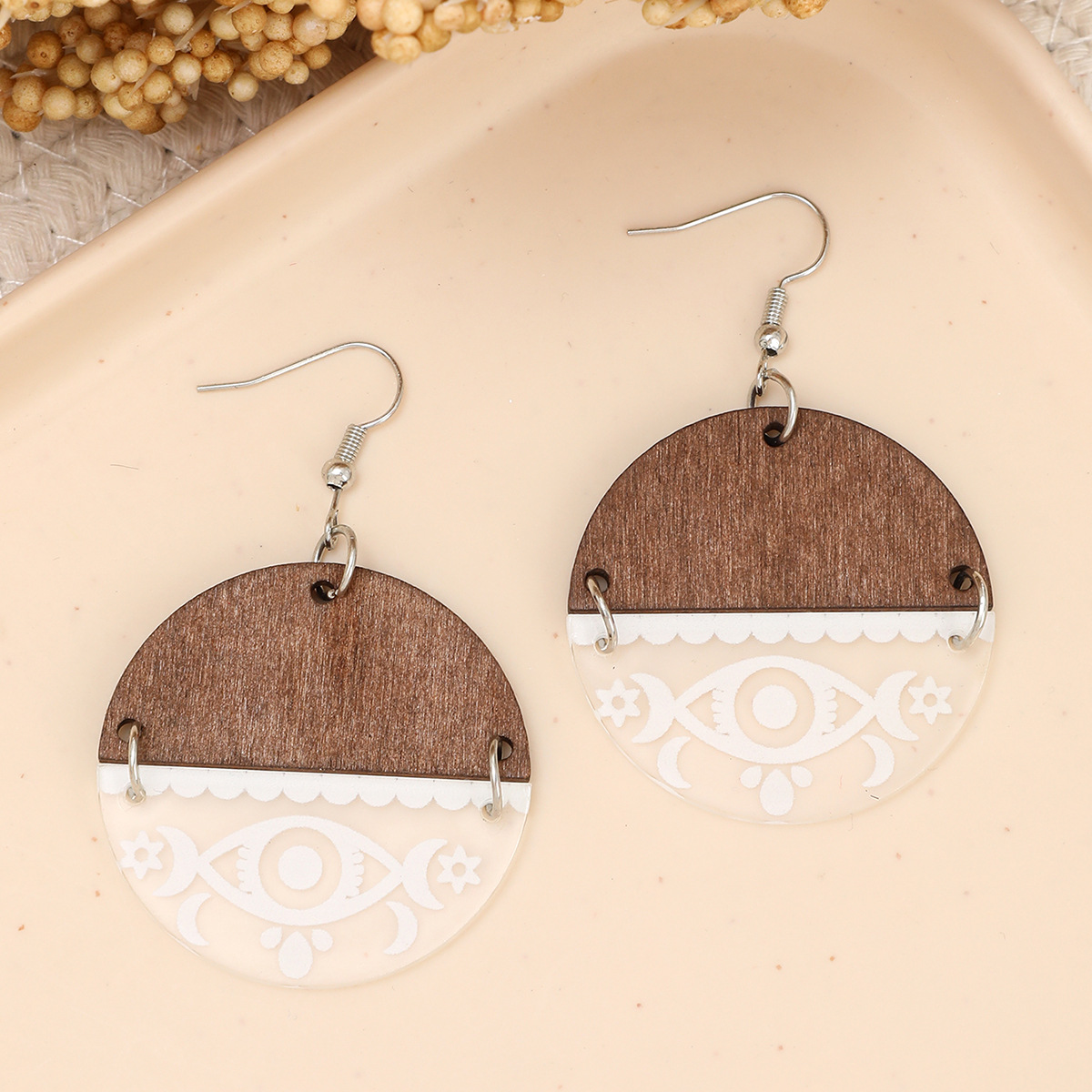 新款爆款木质镂空圆形拼接波西米亚耳饰欧美耳坠复古耳环