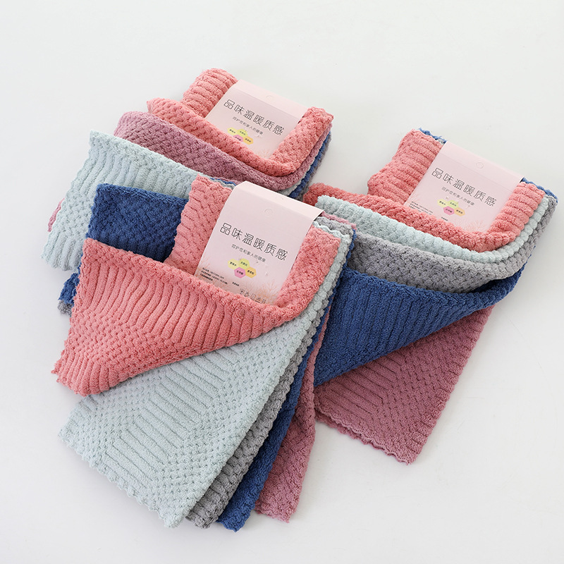 【定制】珊瑚绒吉祥格毛巾成人家用擦手巾厨房抹布小方巾加厚柔软