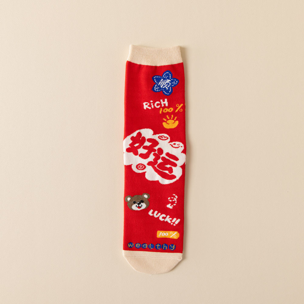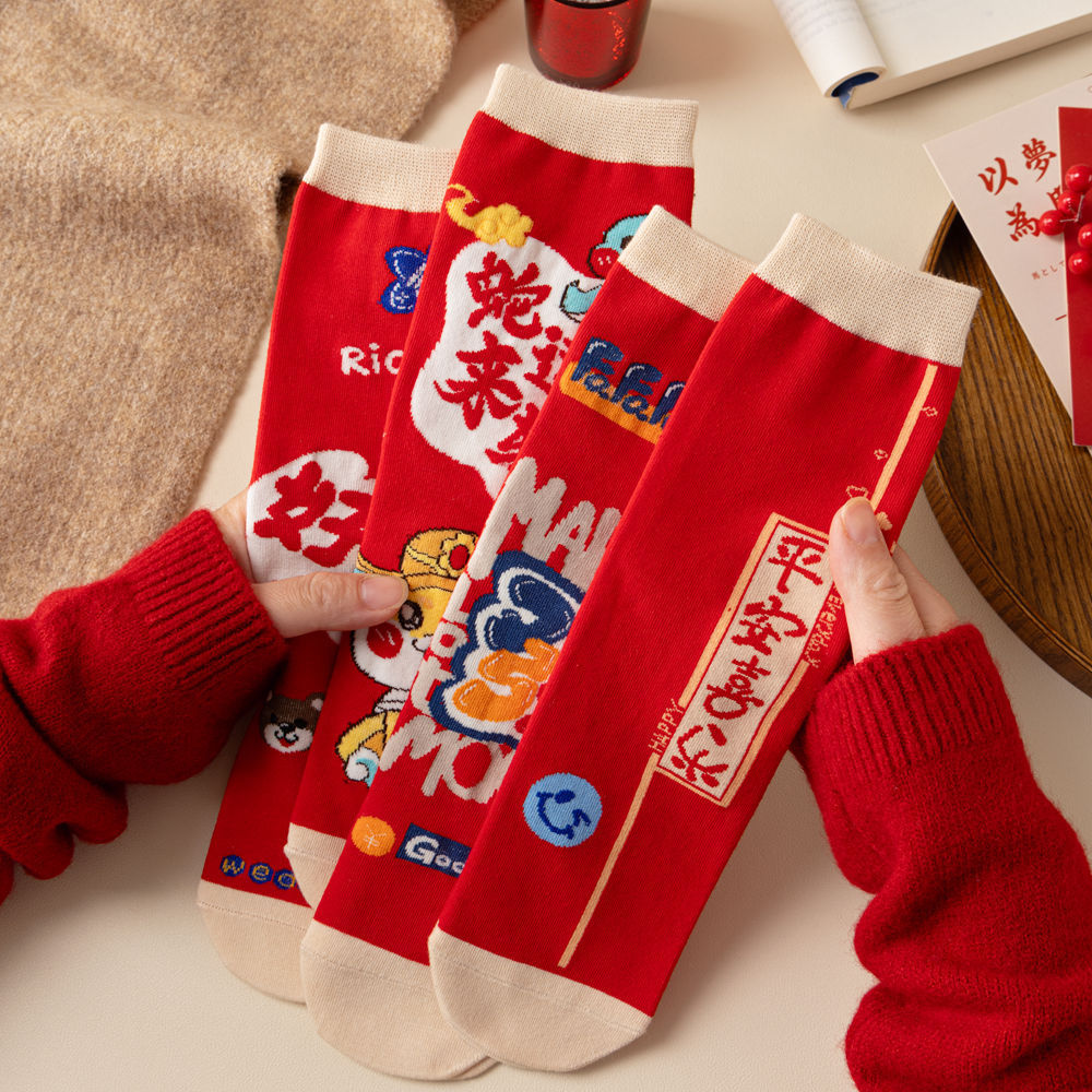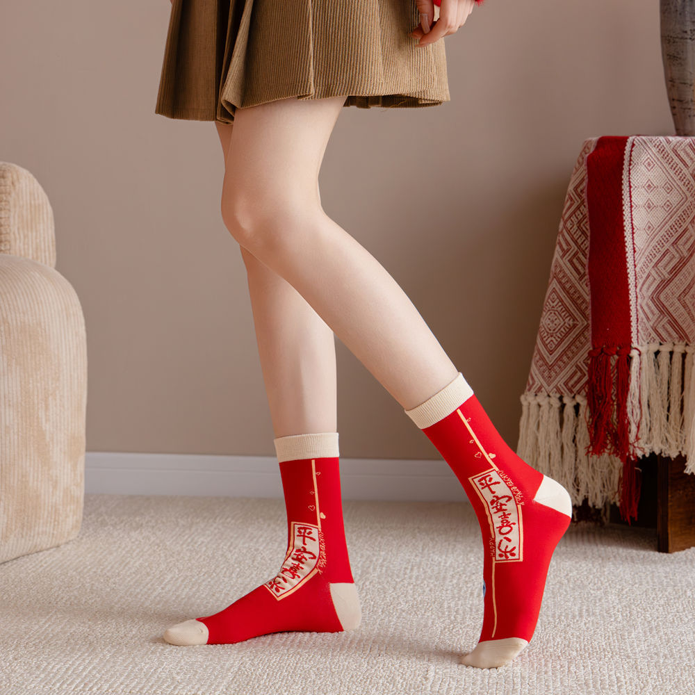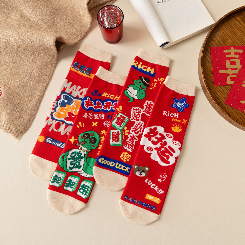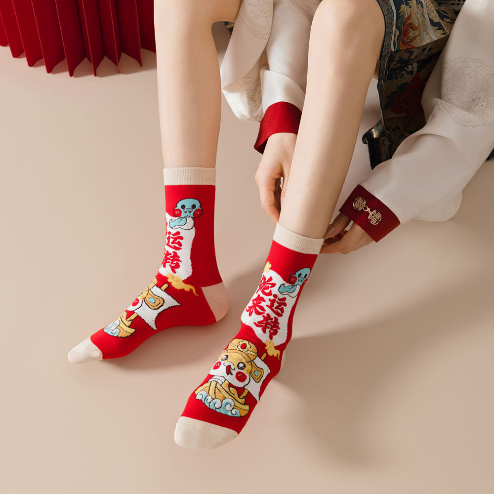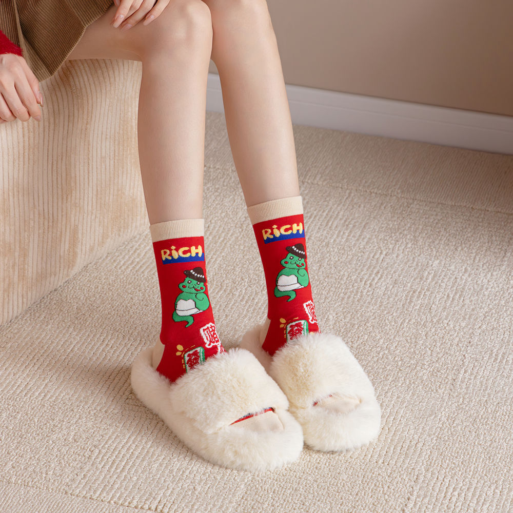 2025卡通本命年蛇年红色袜子新年袜女士秋冬中筒袜大红袜子批发