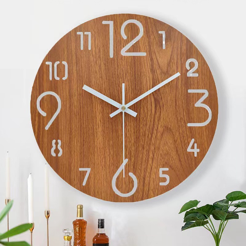 厂家直营创意夜光木质挂钟木板静音时钟简约客厅装饰钟表
