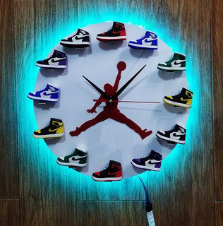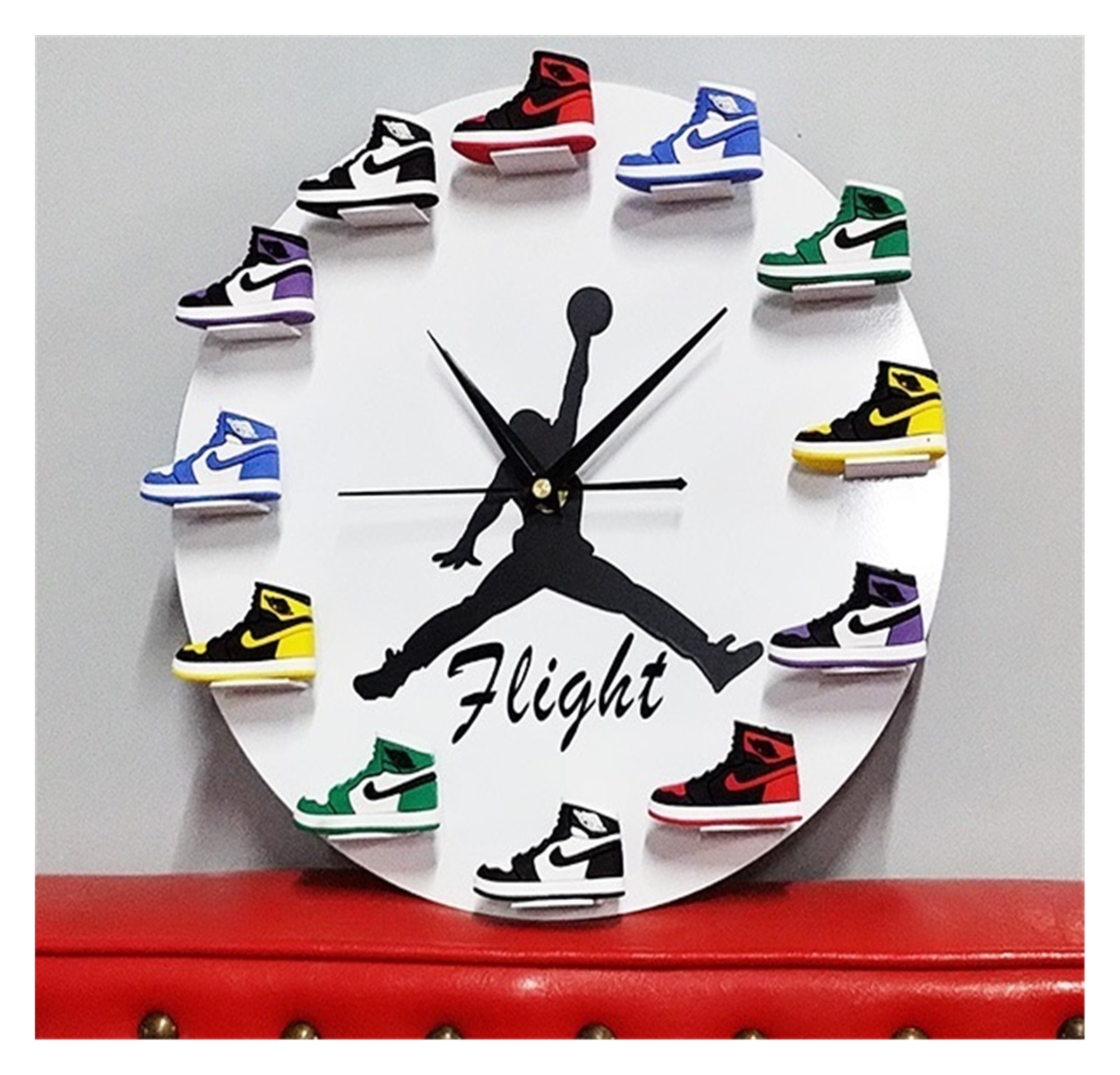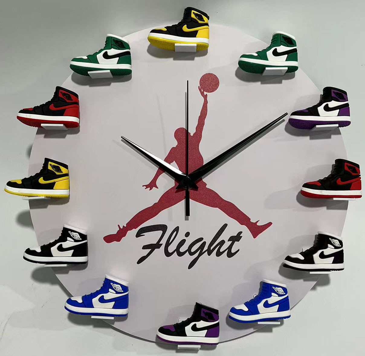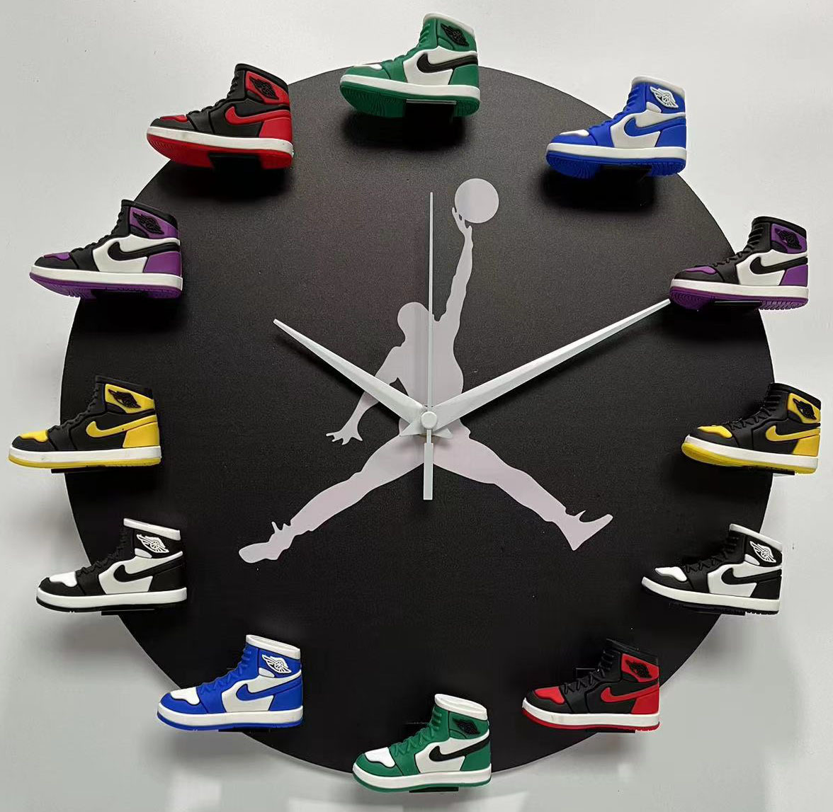 现货aj挂钟3D立体小鞋子时钟挂墙家用创意钟表厂家批发一件代发