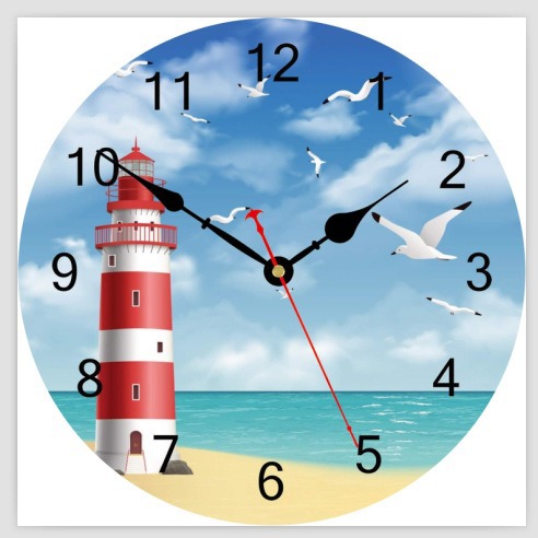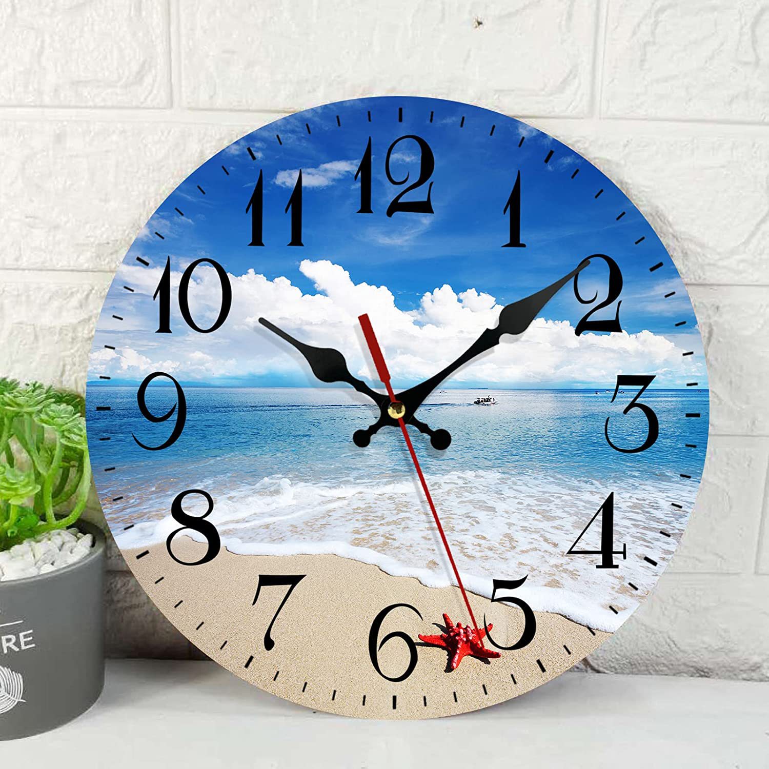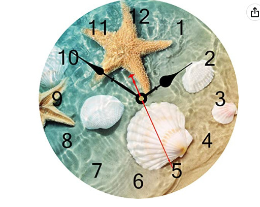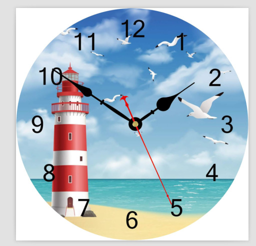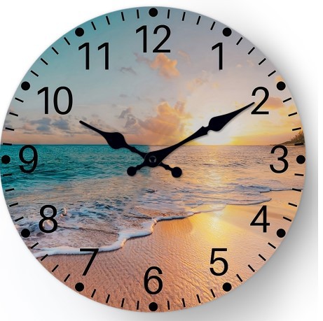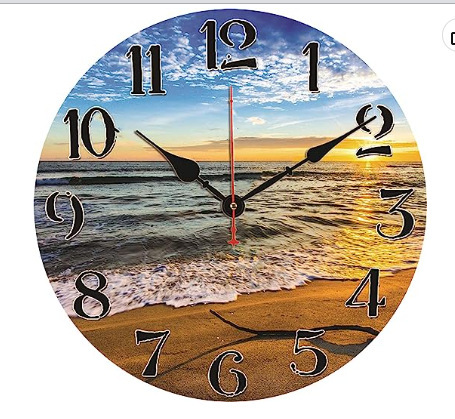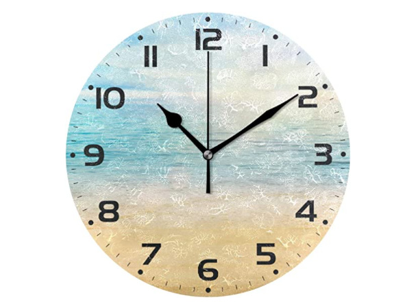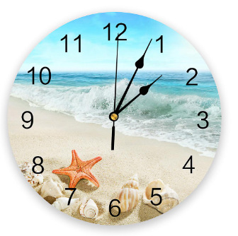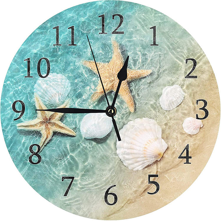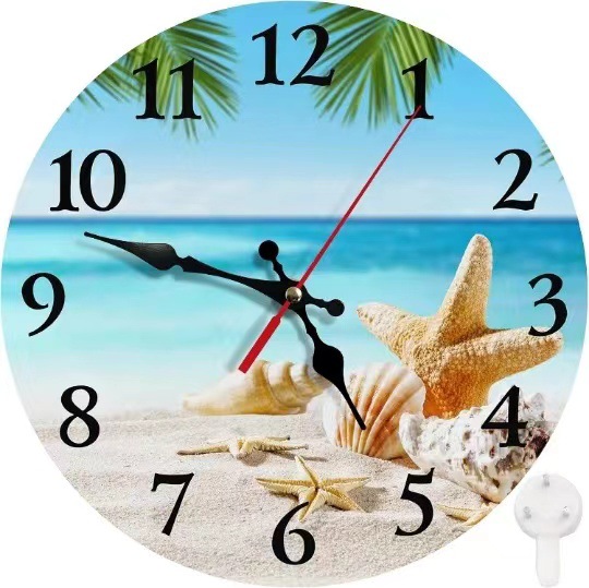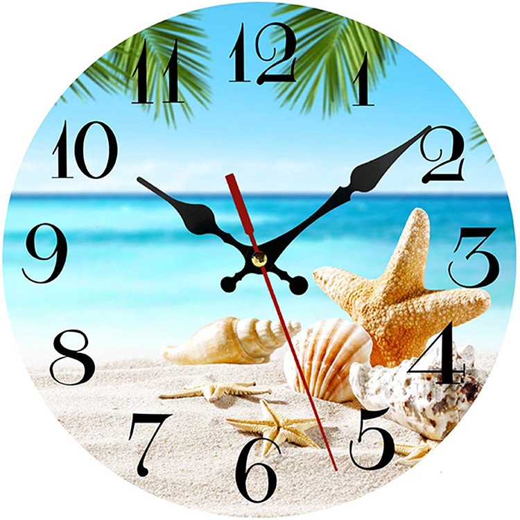 海滩挂钟数字创意时钟客厅静音海滩风景壁钟厂家直营现货批发钟