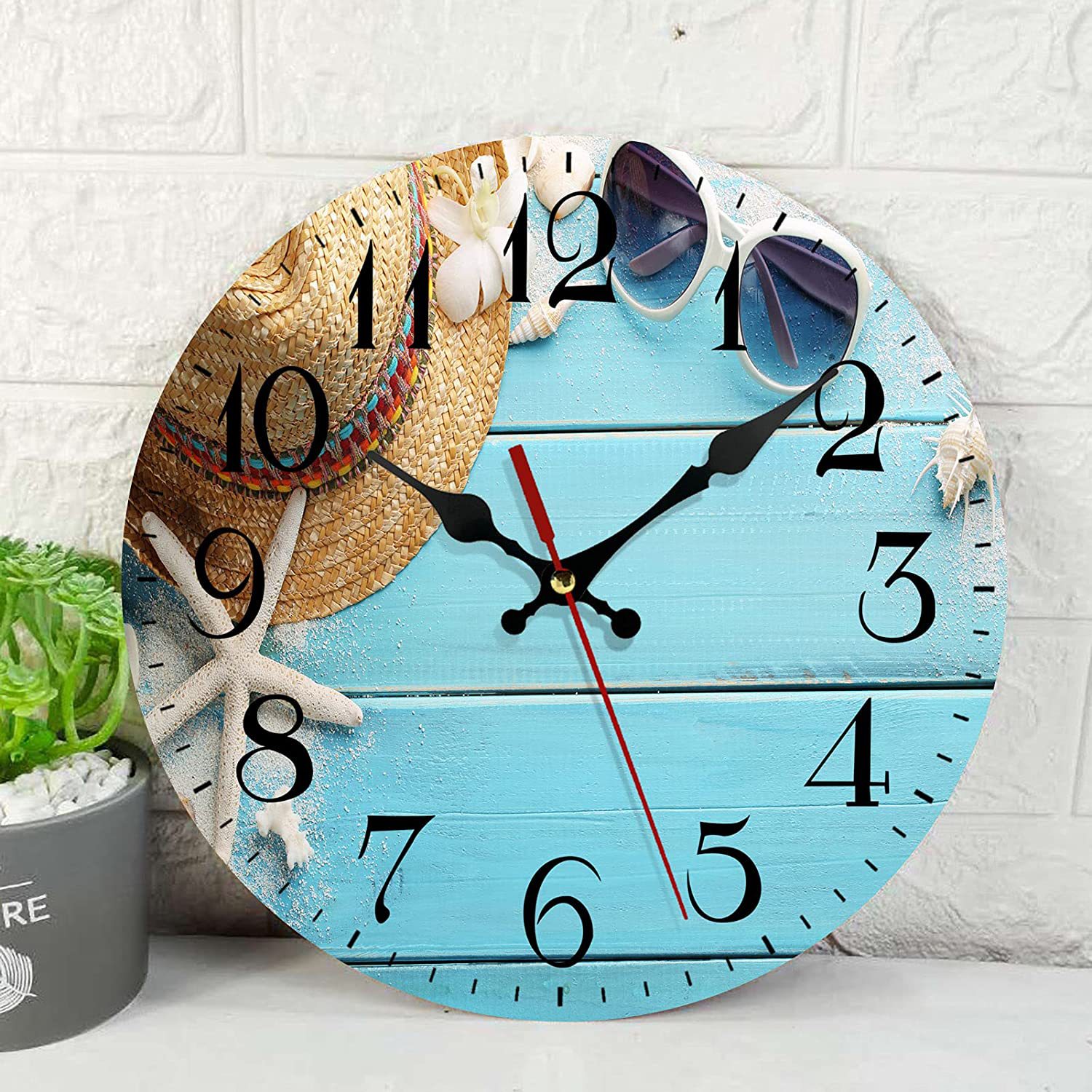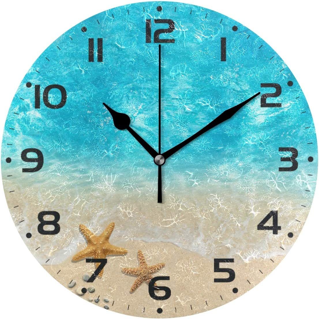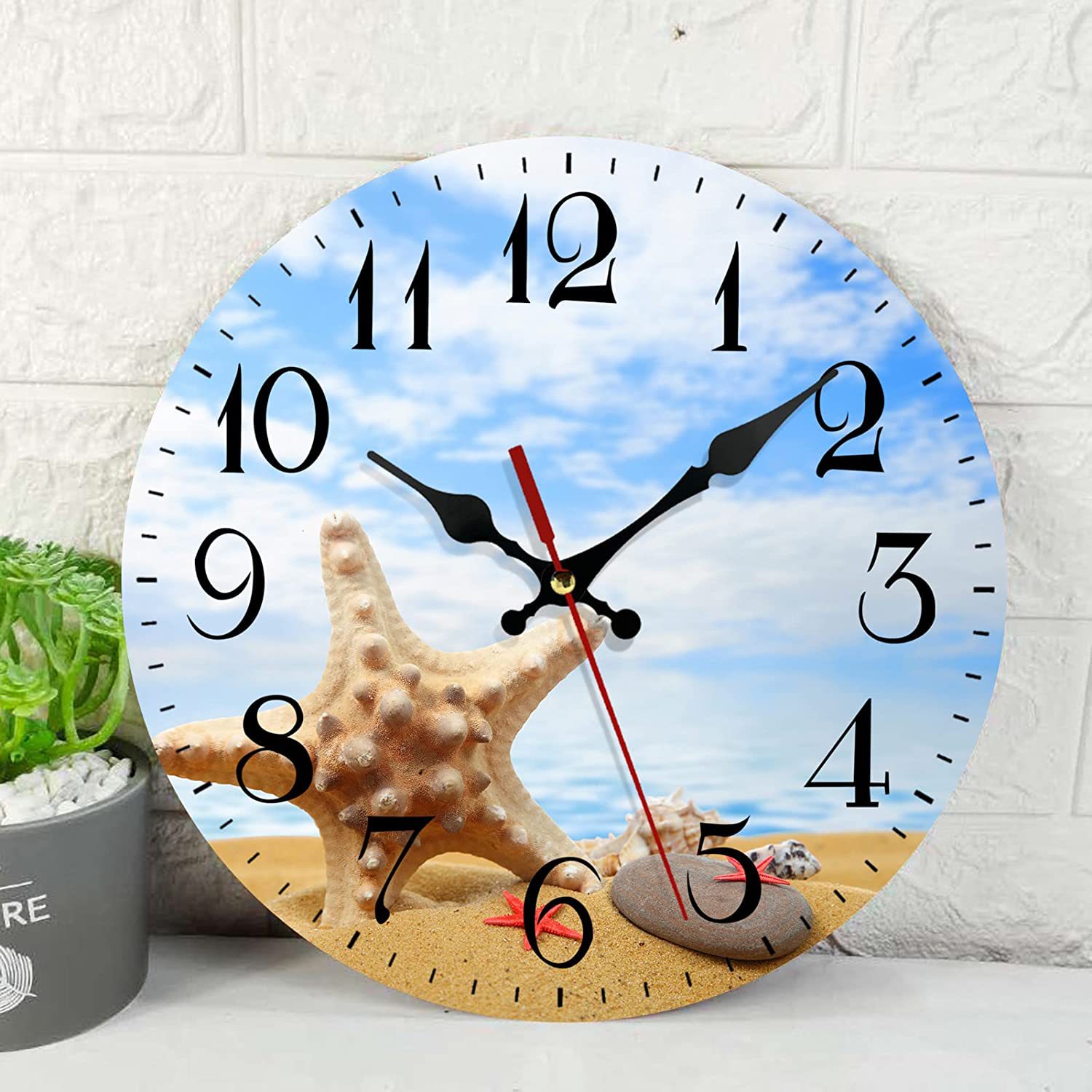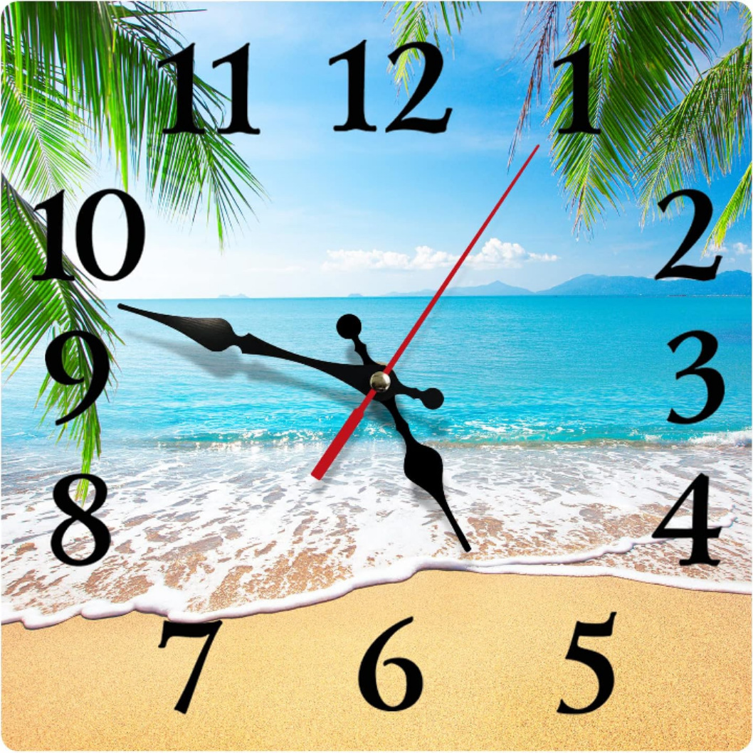 海滩挂钟数字创意时钟客厅静音海滩风景壁钟厂家直营现货批发钟