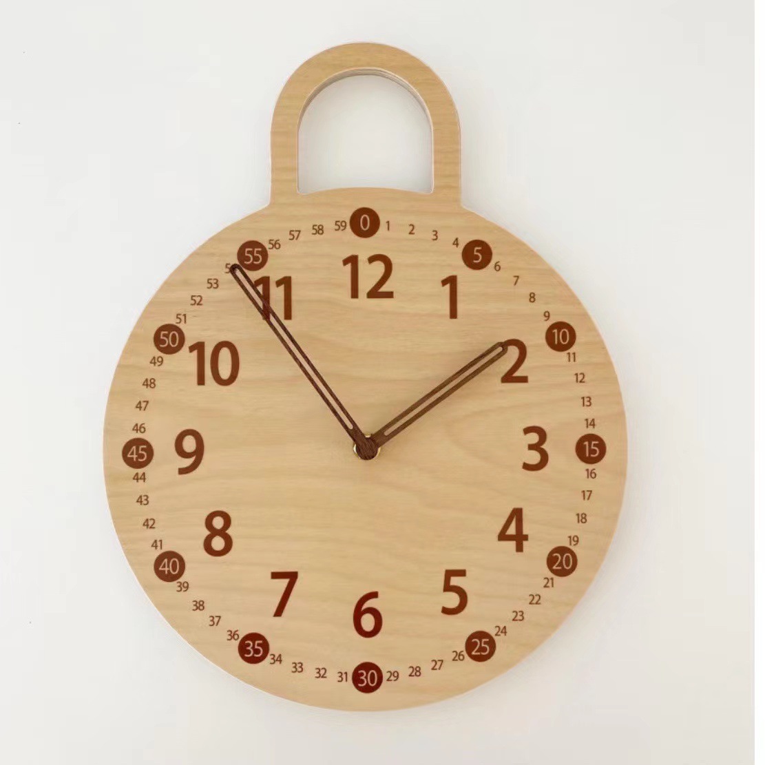 日式时尚创意挂钟家用挂墙ins风儿童房装饰时钟圆形数字静音钟表
