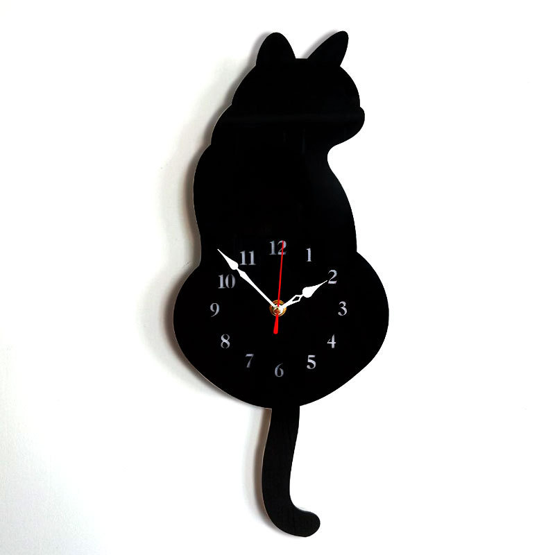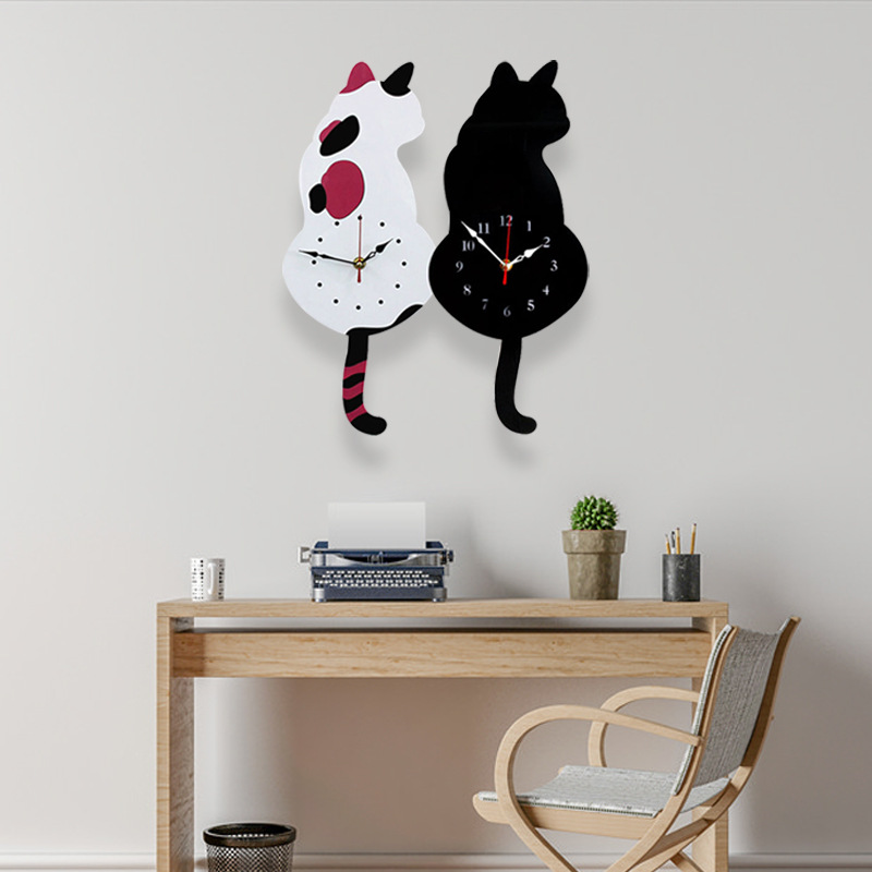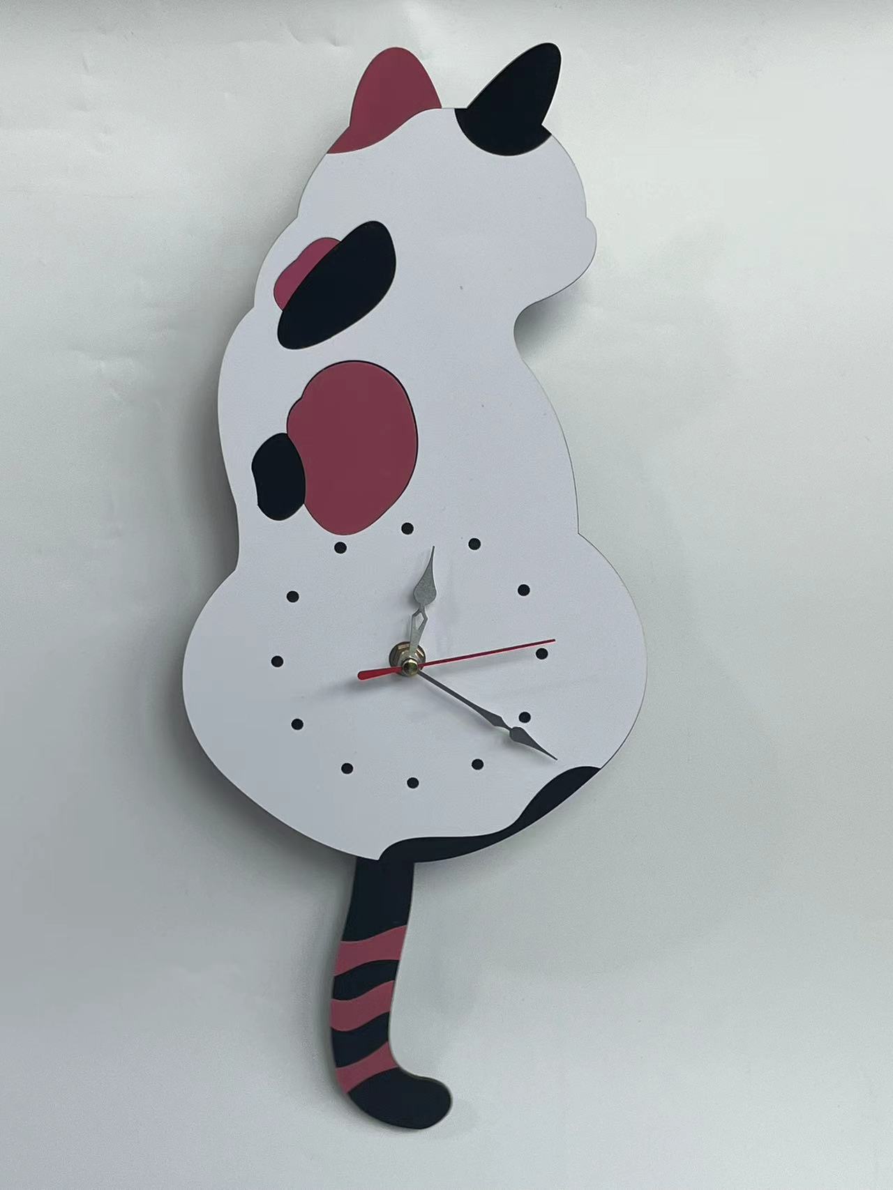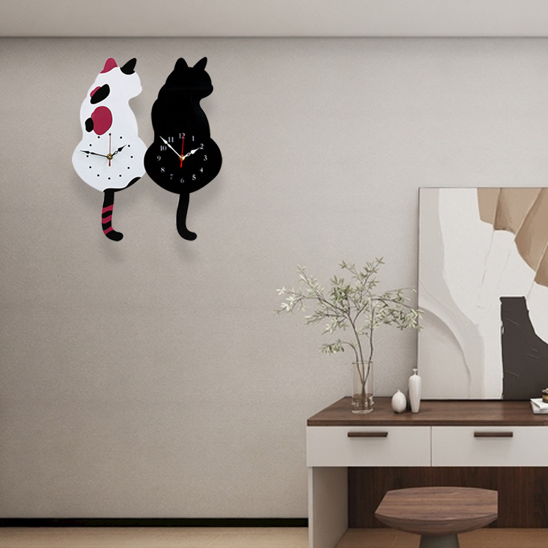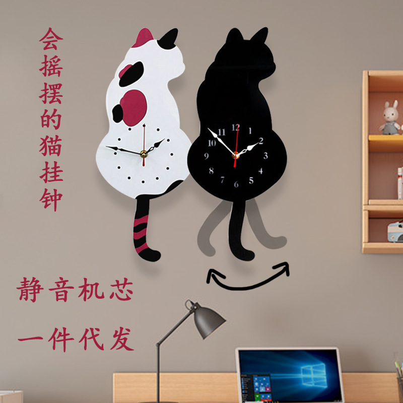 跨境摇摆猫挂钟创意亚克力静音钟表家居客厅装饰壁挂时钟