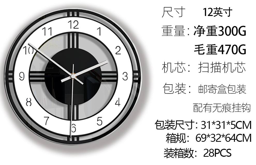 简约亚克力挂钟黑白装饰钟表客厅卧室 钟表家用