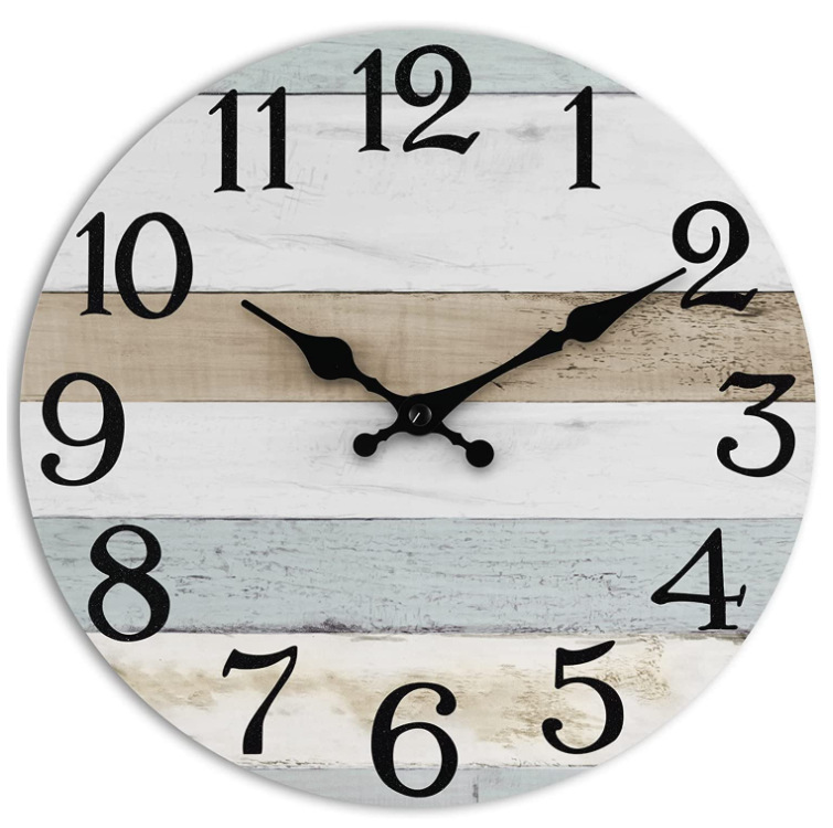 厂家批发10寸木纹挂钟北欧家居静音钟表客厅卧室创意密度板钟