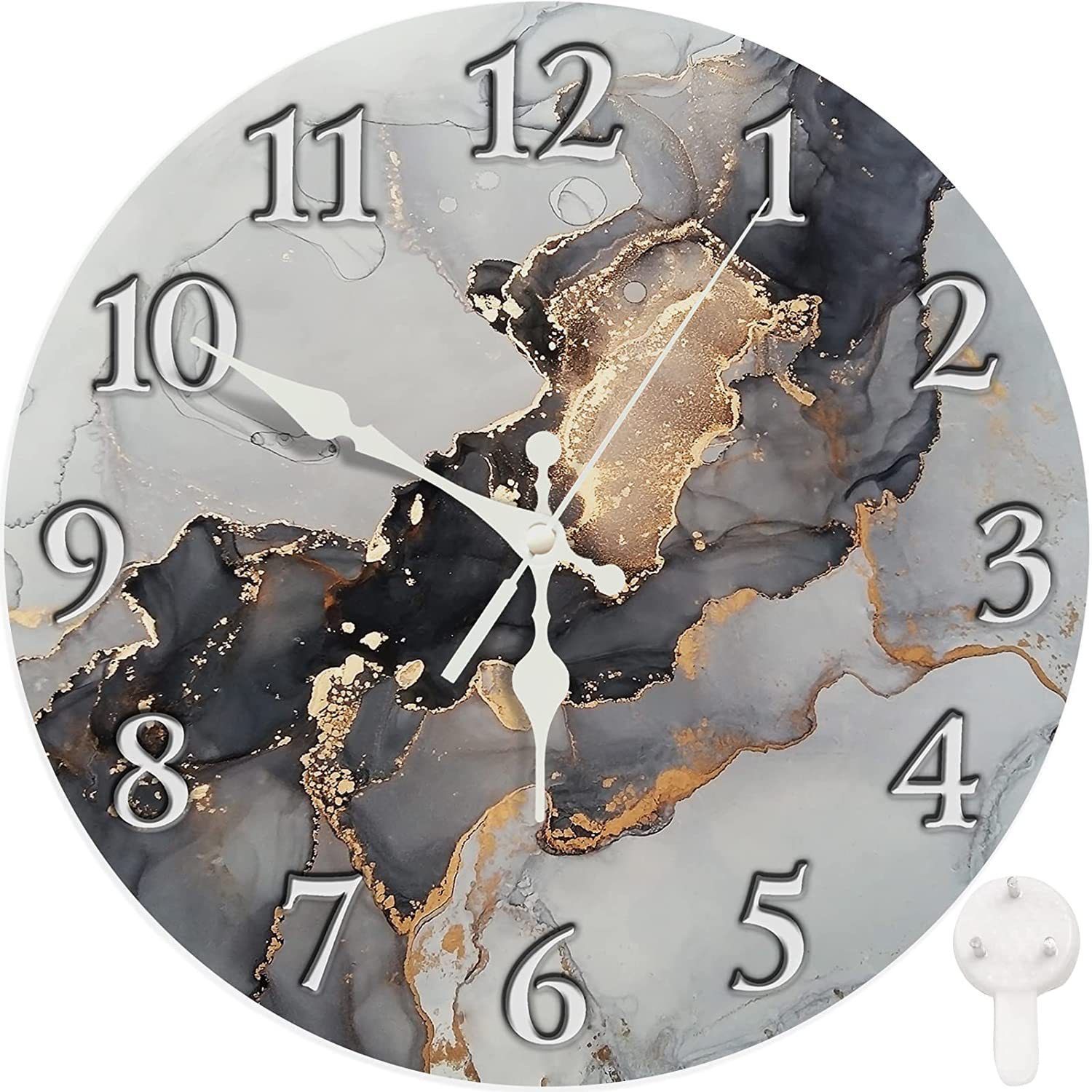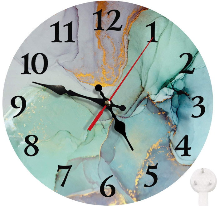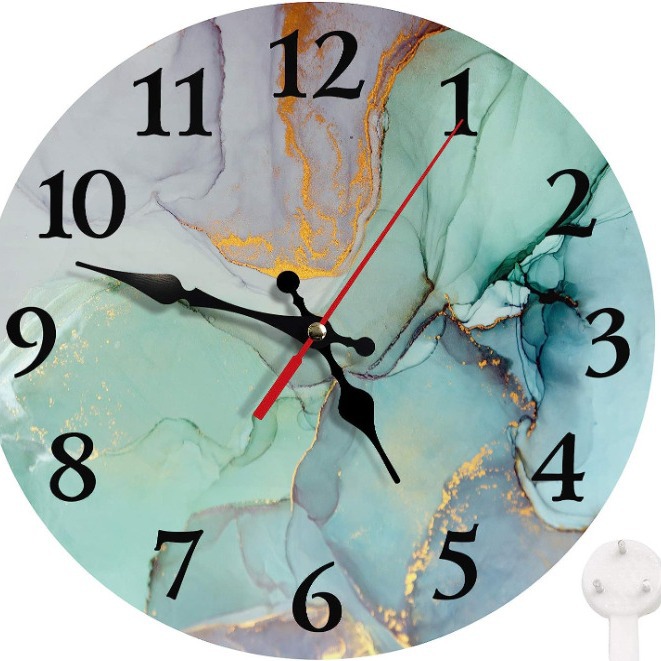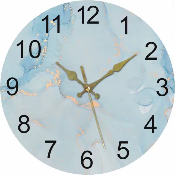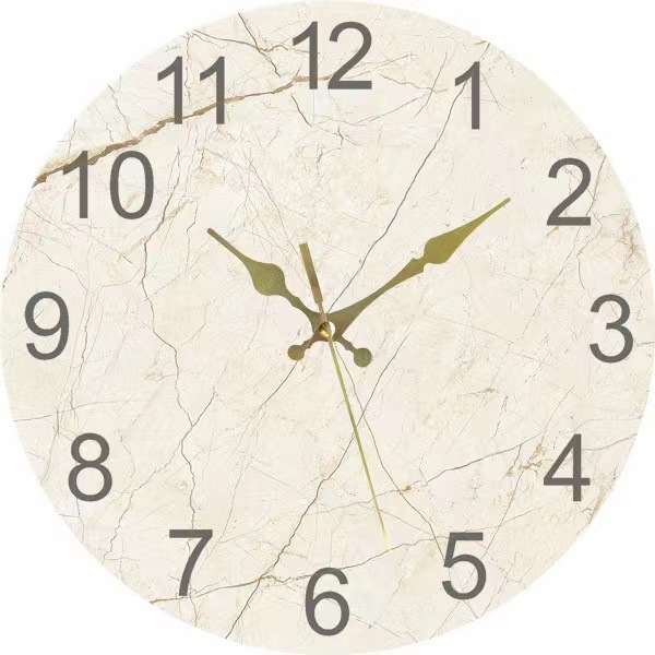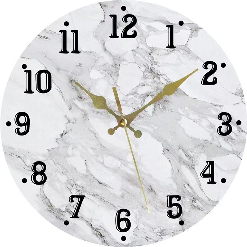 跨境大理石挂钟密度板静音时钟客厅钟表装饰壁挂钟仿石纹钟