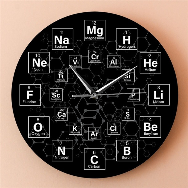 跨境元素周期表时钟化学符号实验室装饰壁钟亚克力家用装饰墙钟