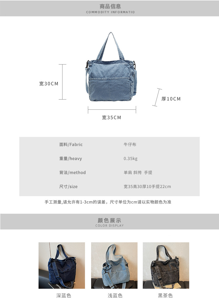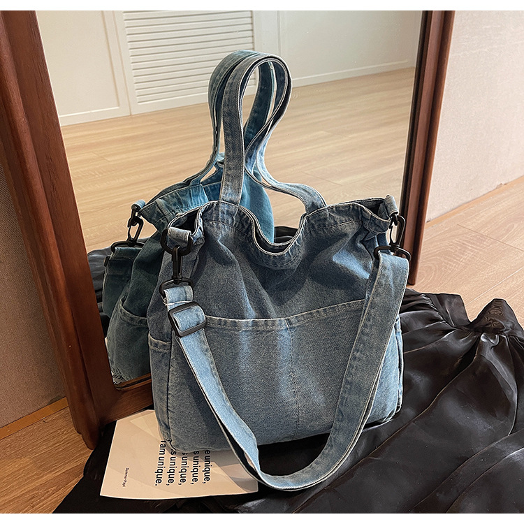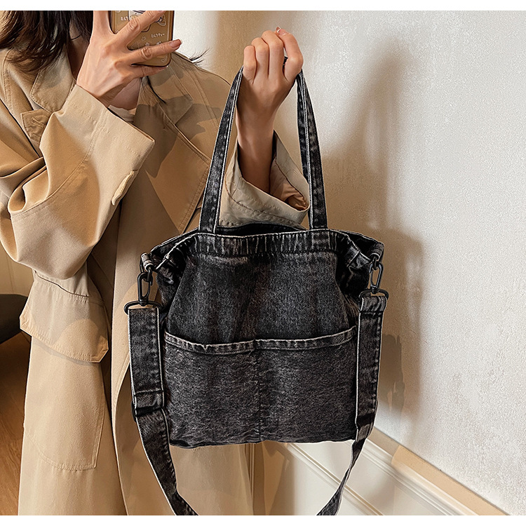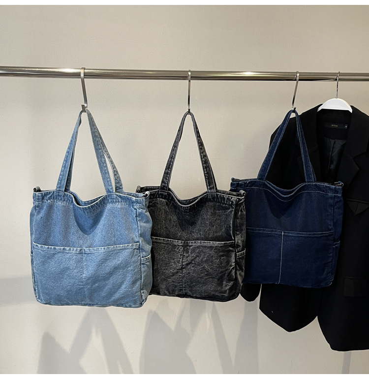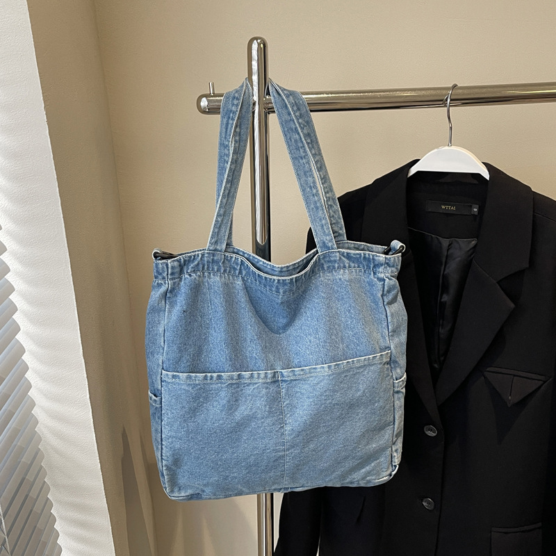 托特包休闲牛仔简约质感单肩包通勤包包女