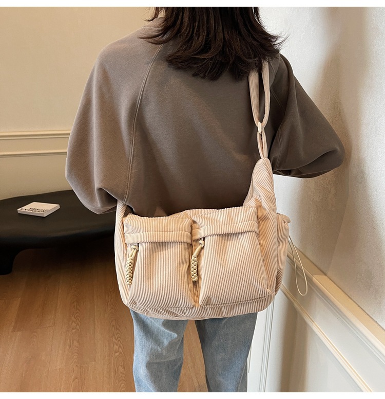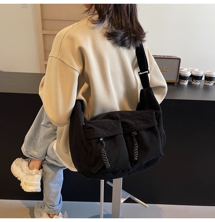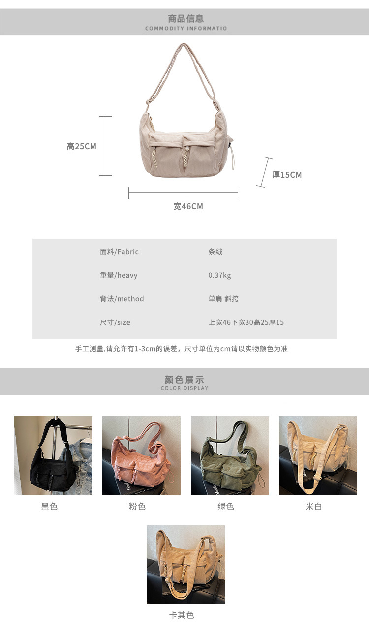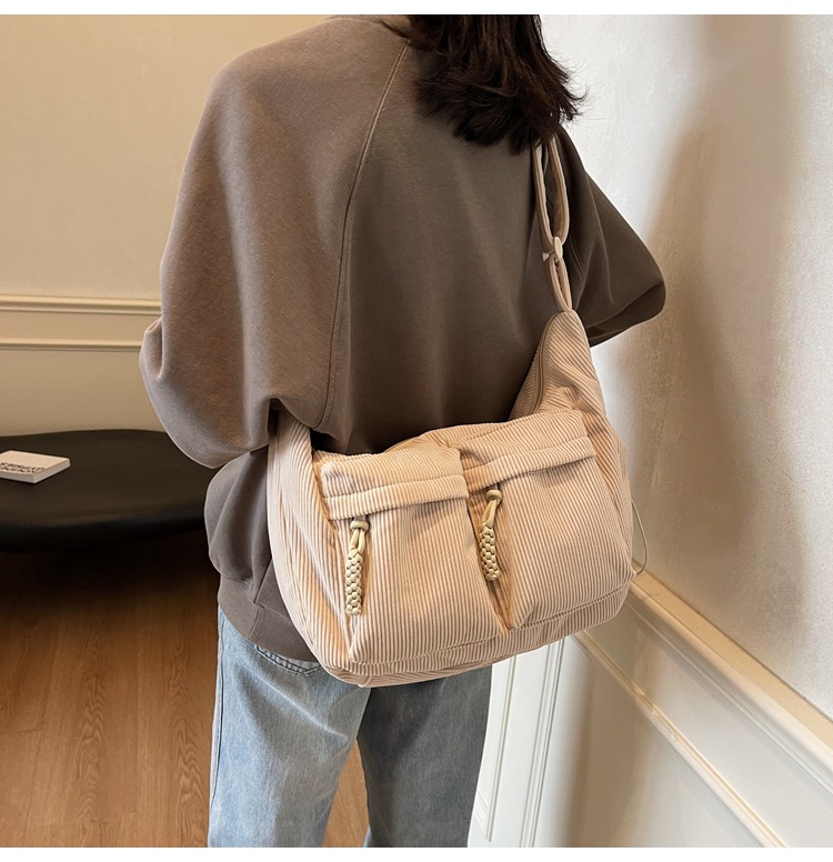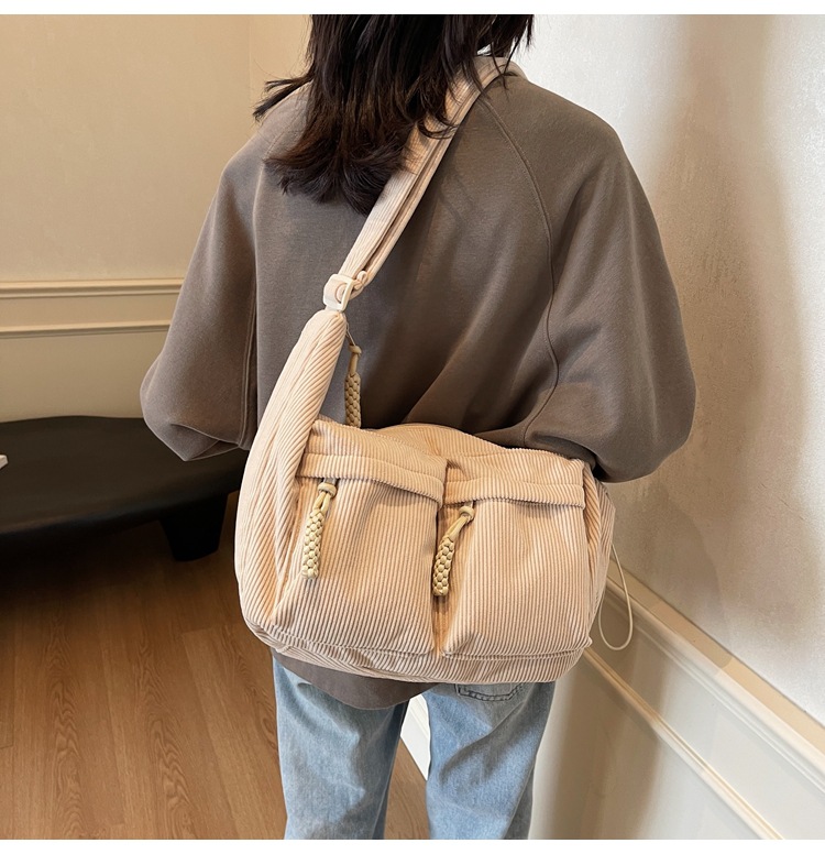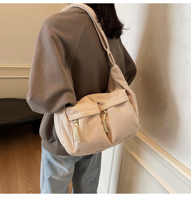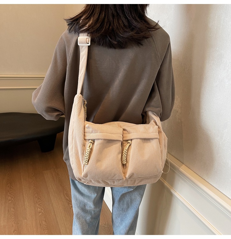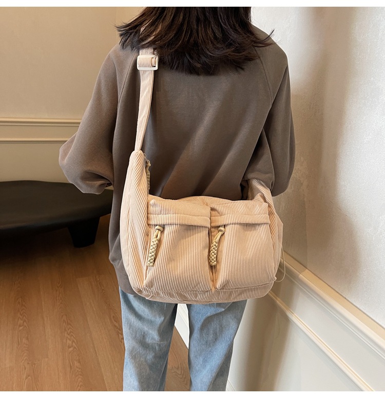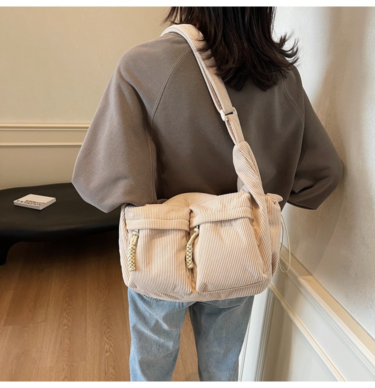 新款灯芯绒单肩包女斜挎包时尚上课通勤条绒包