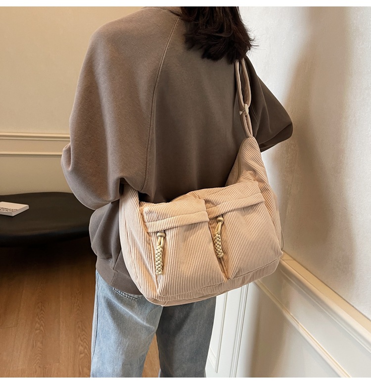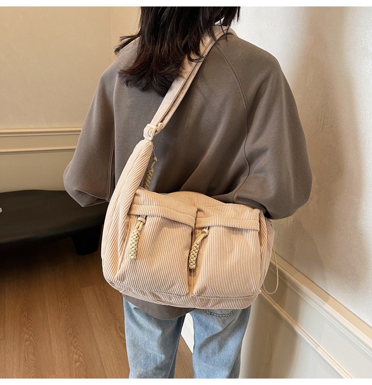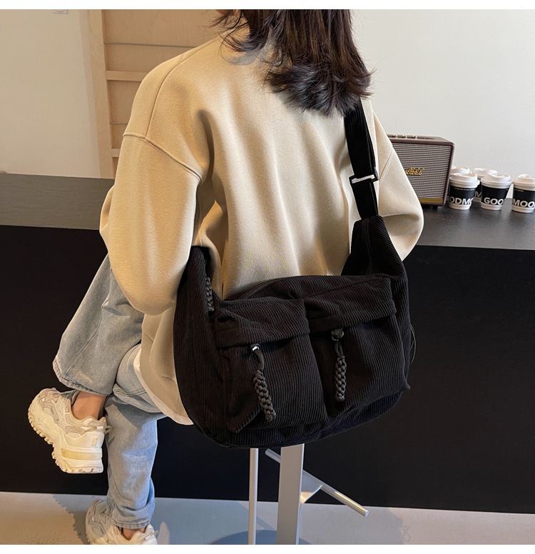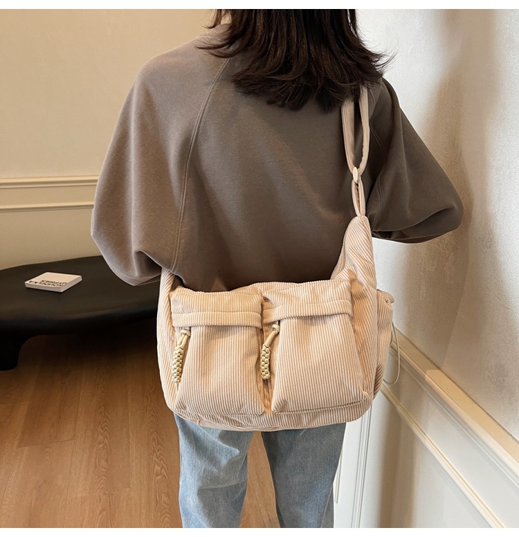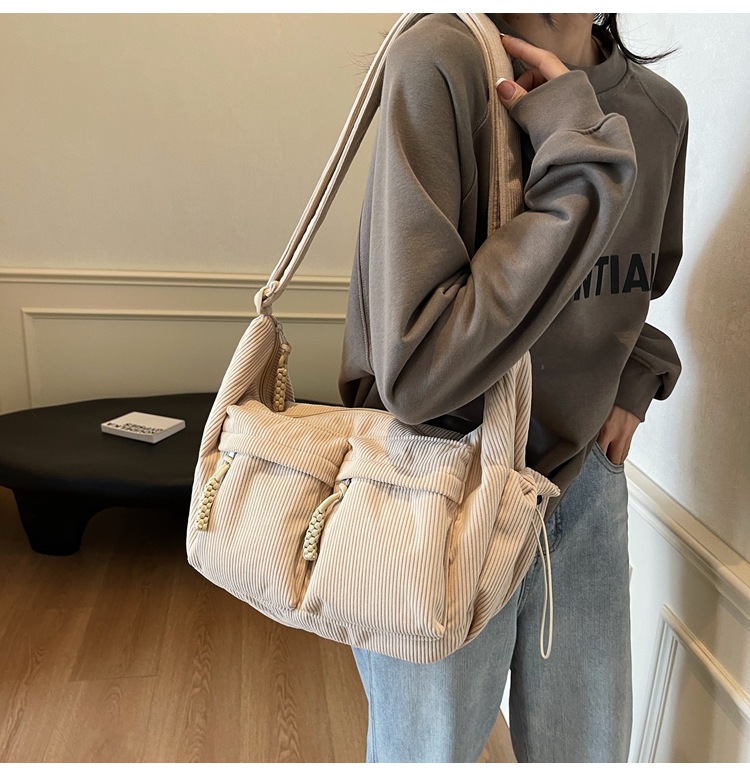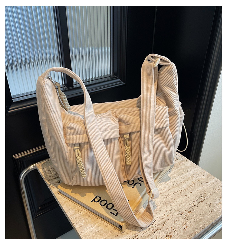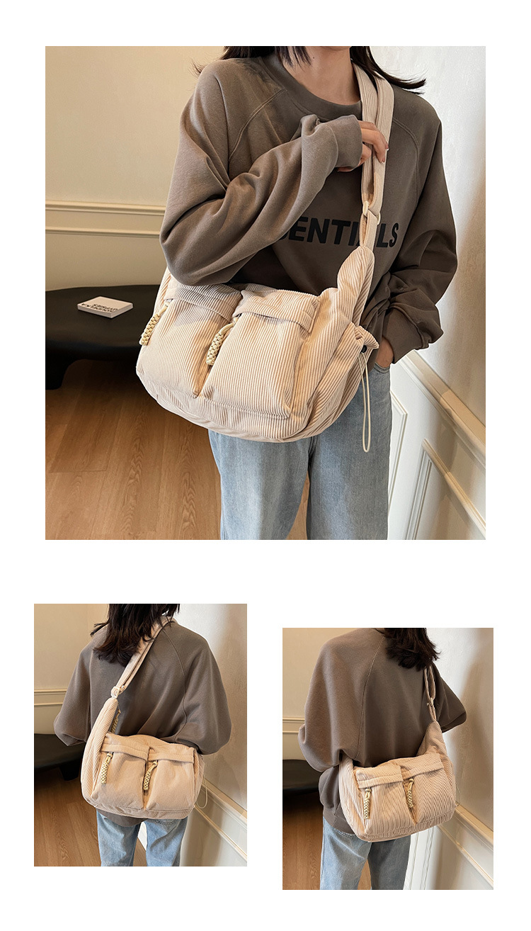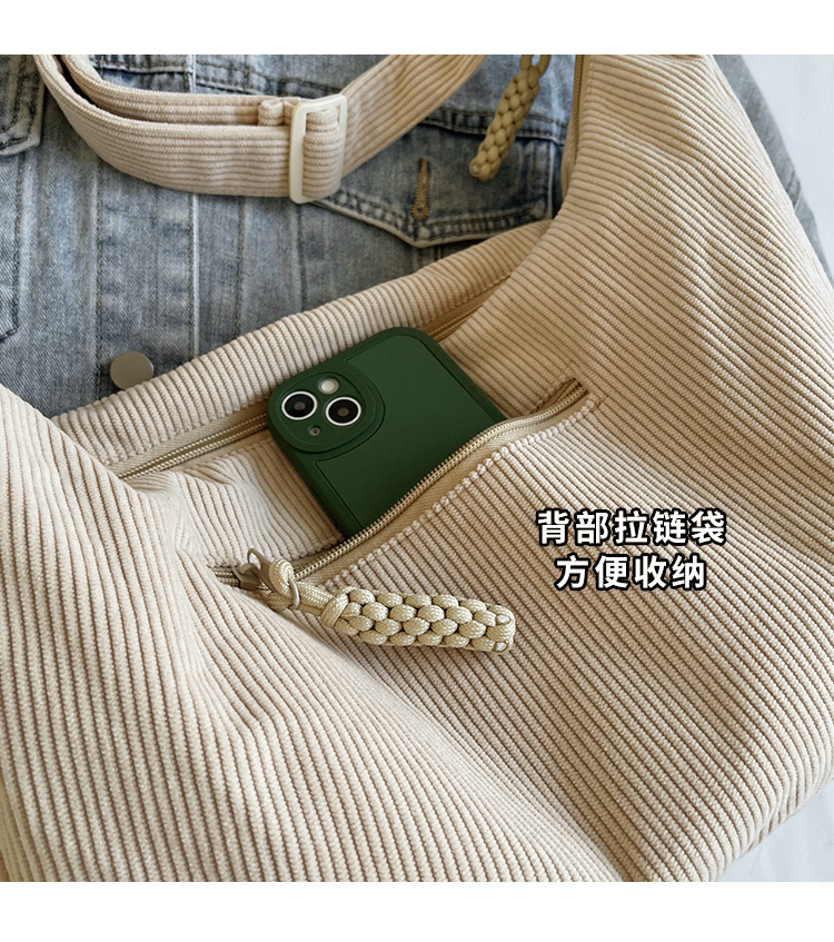 新款灯芯绒单肩包女斜挎包时尚上课通勤条绒包