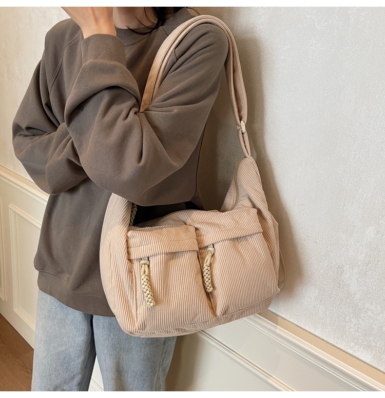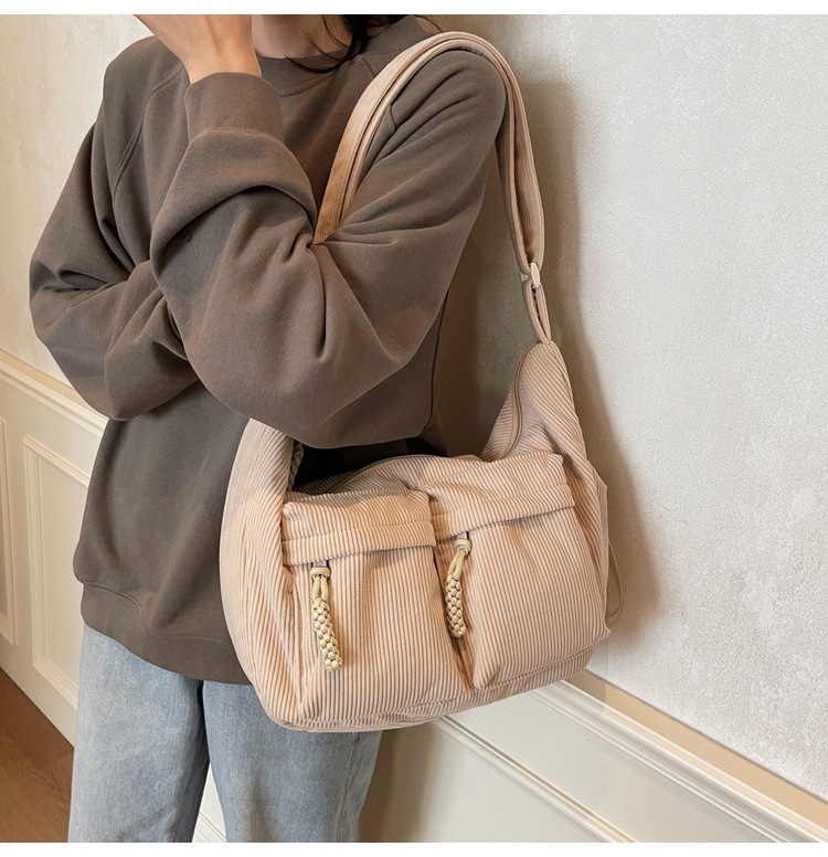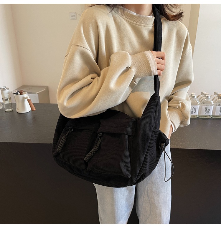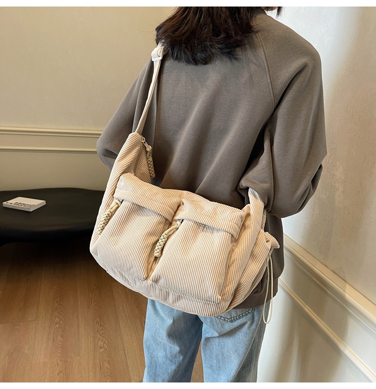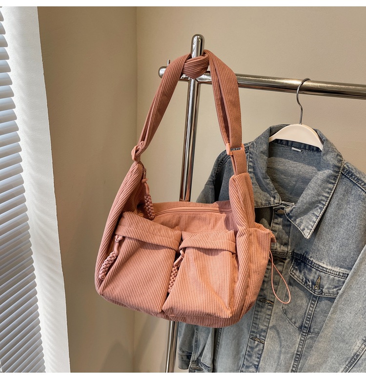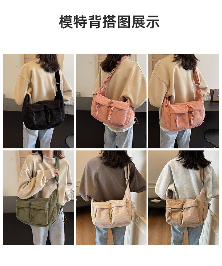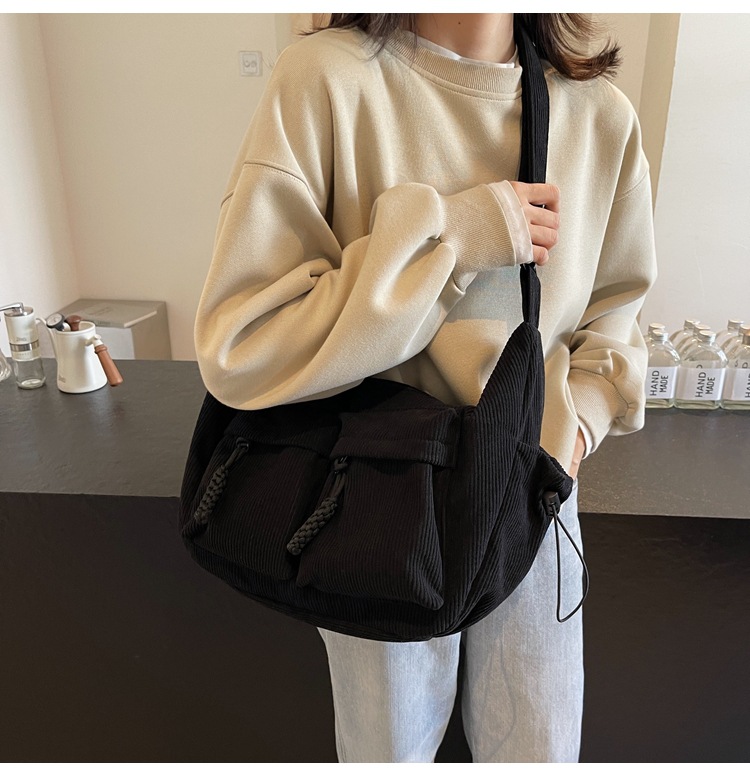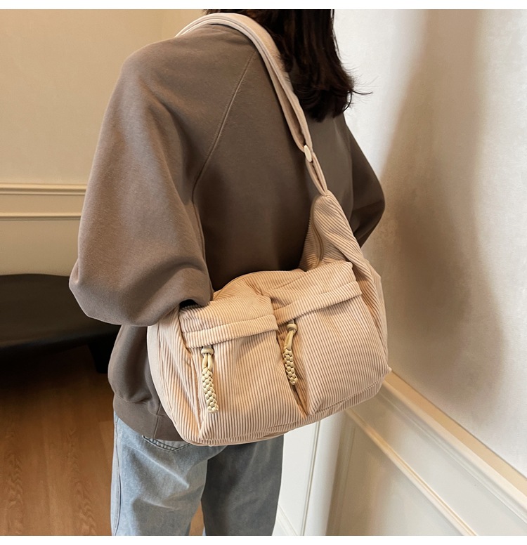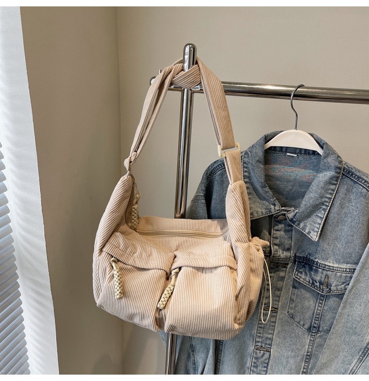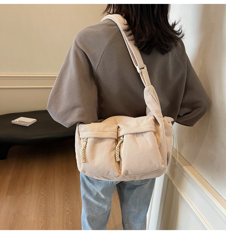 新款灯芯绒单肩包女斜挎包时尚上课通勤条绒包