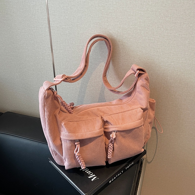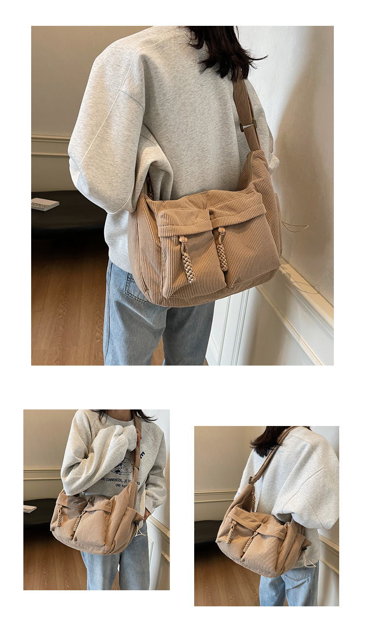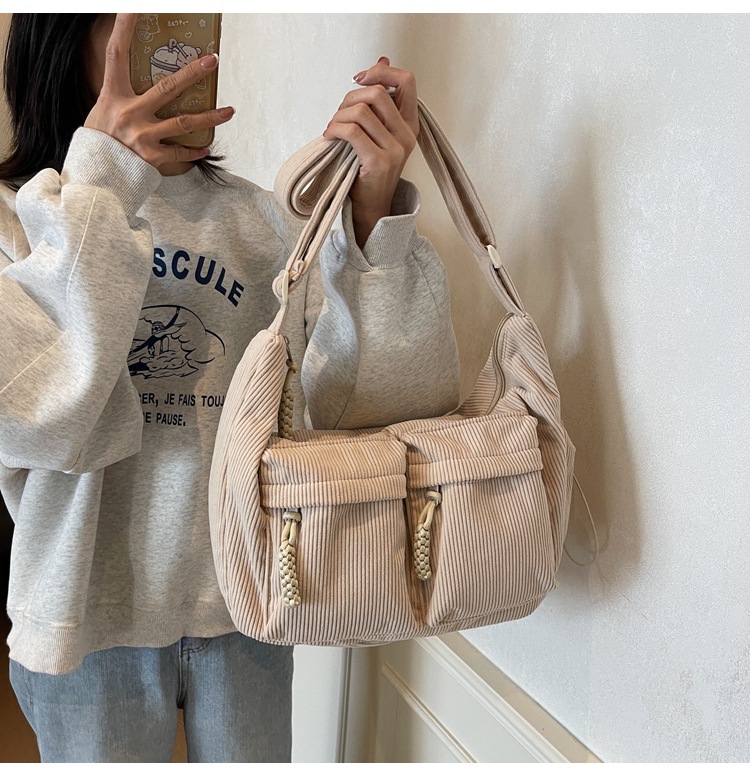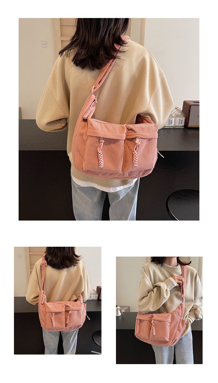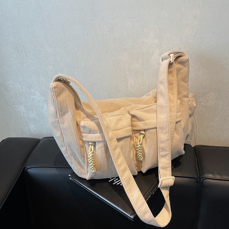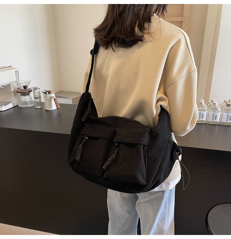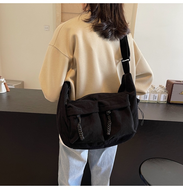新款灯芯绒单肩包女斜挎包时尚上课通勤条绒包