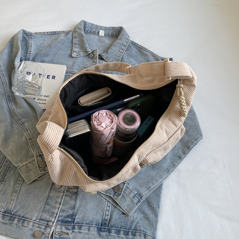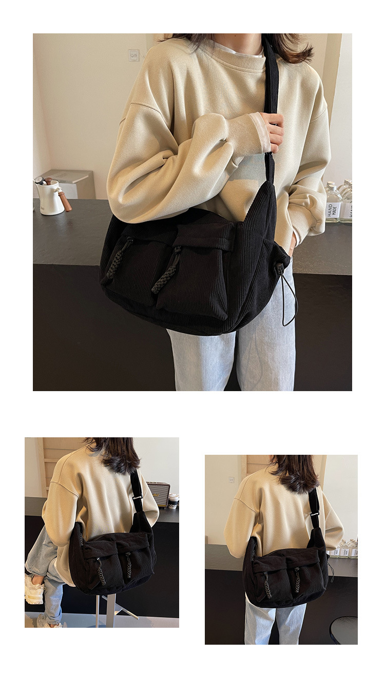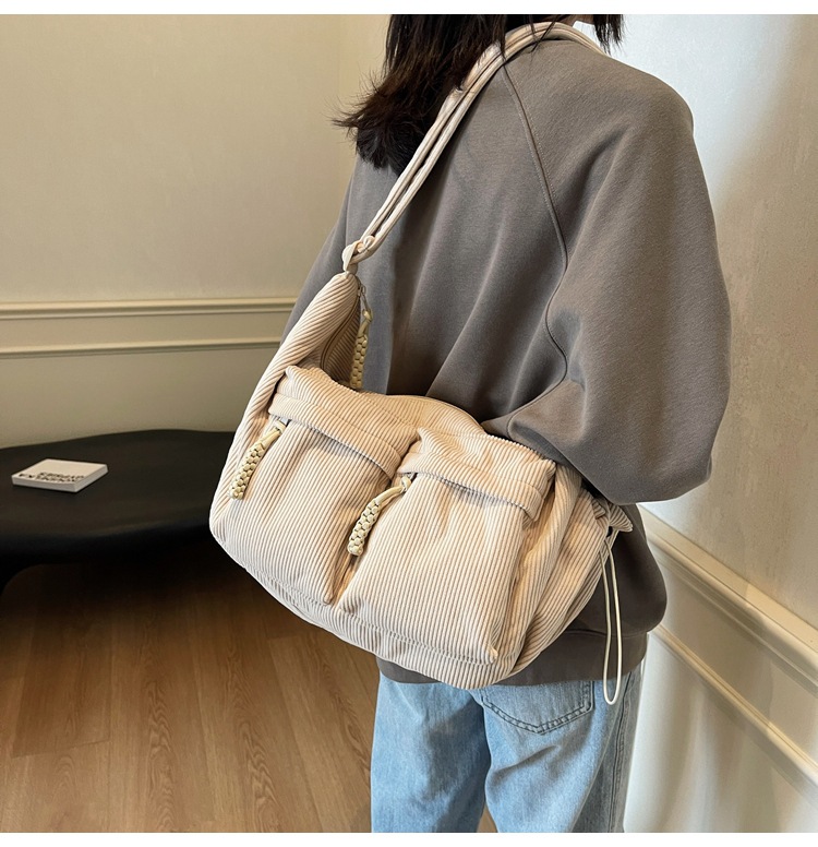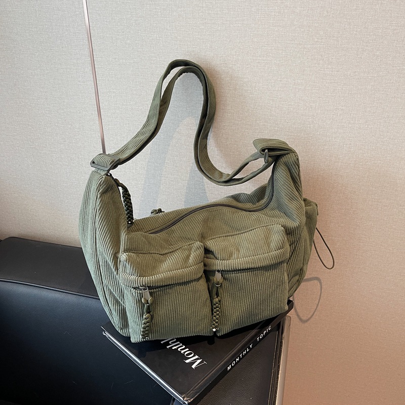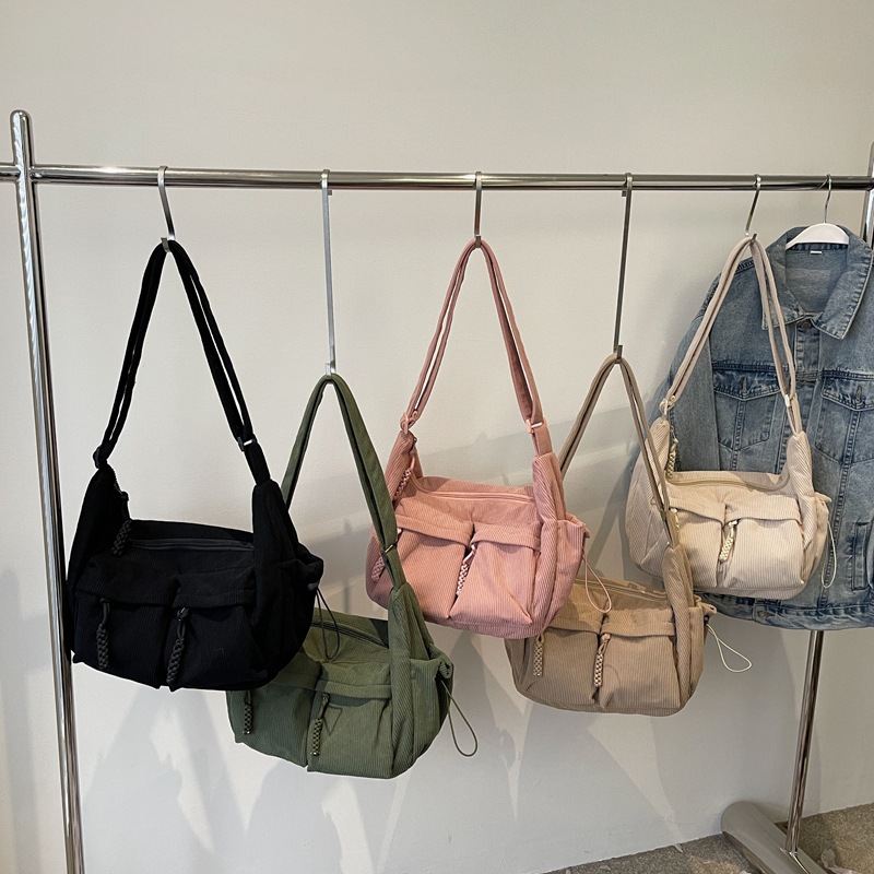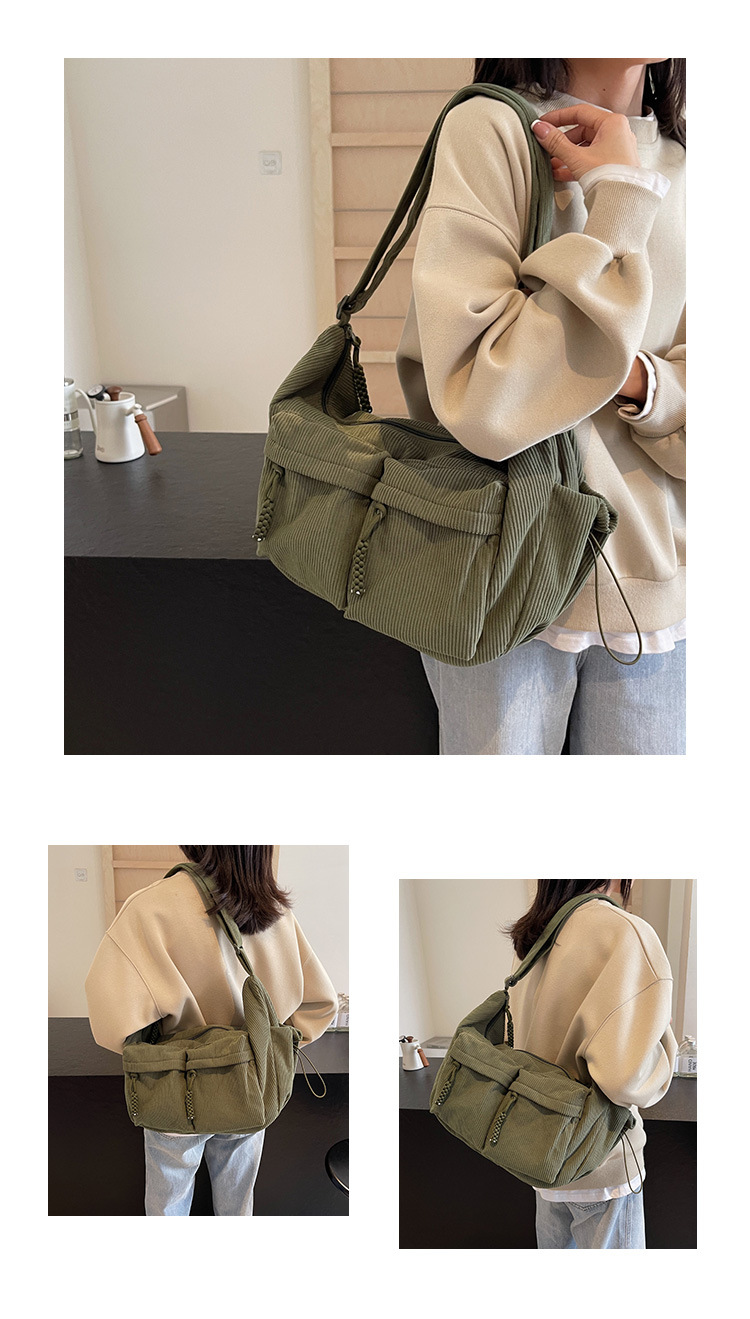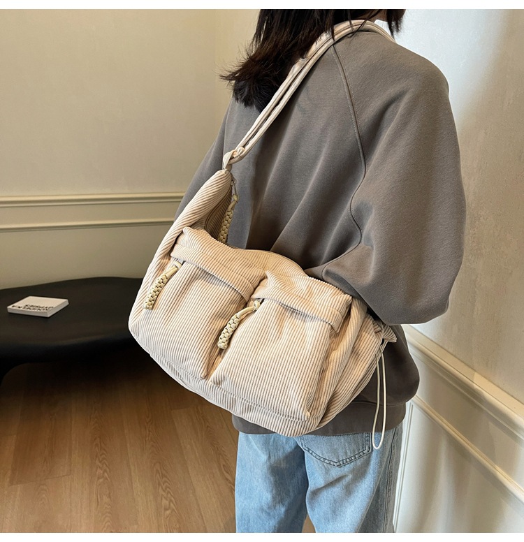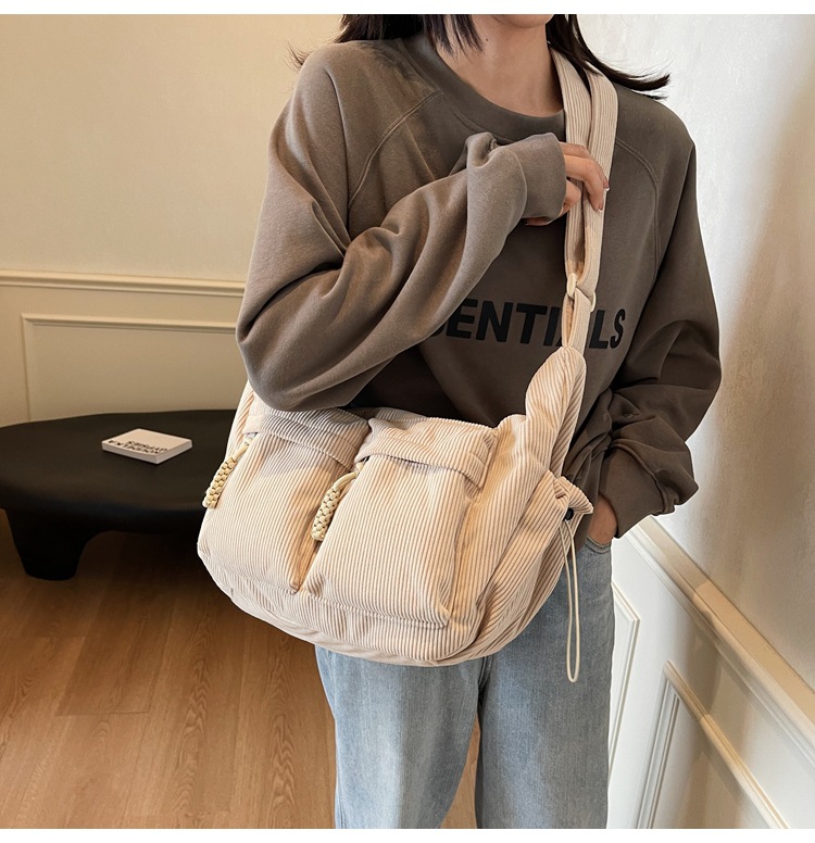 新款灯芯绒单肩包女斜挎包时尚上课通勤条绒包