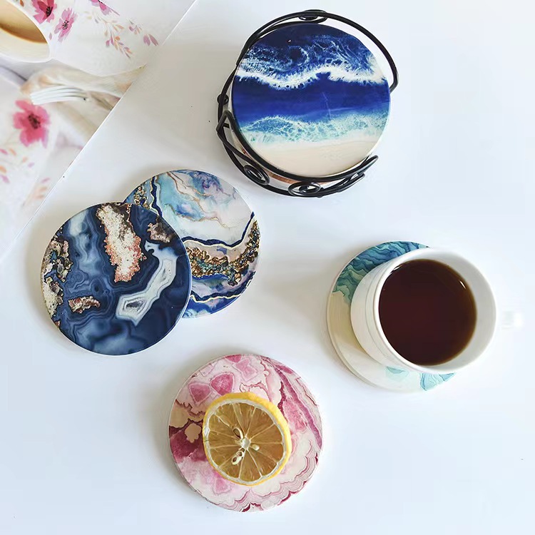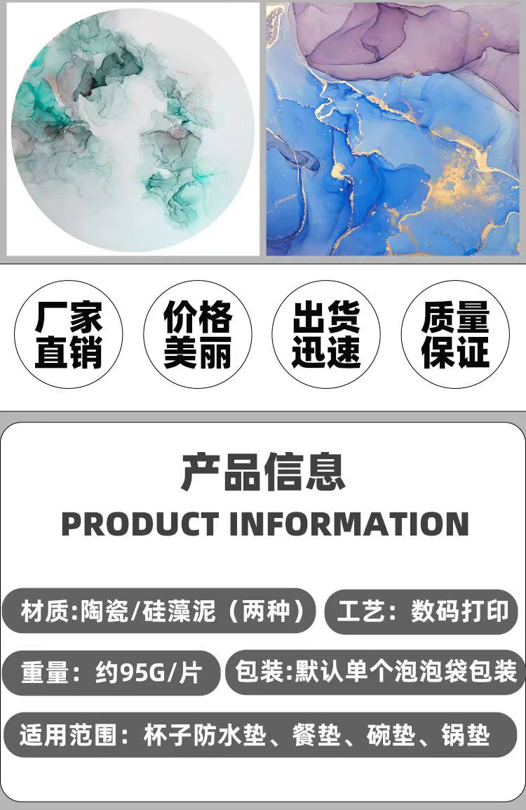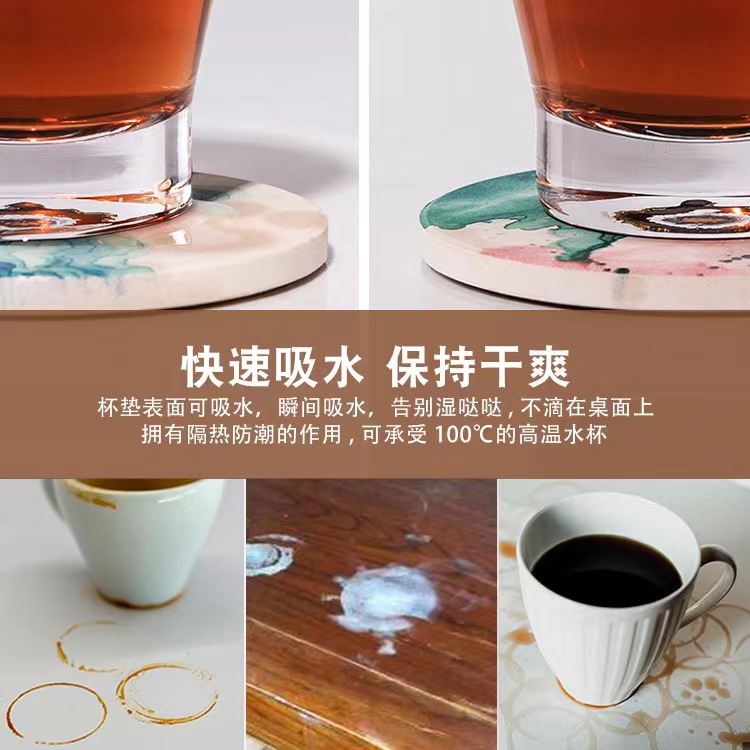 简约恒温陶瓷杯垫圆形10CM吸水硅藻泥防滑杯子垫隔热防烫创意礼品