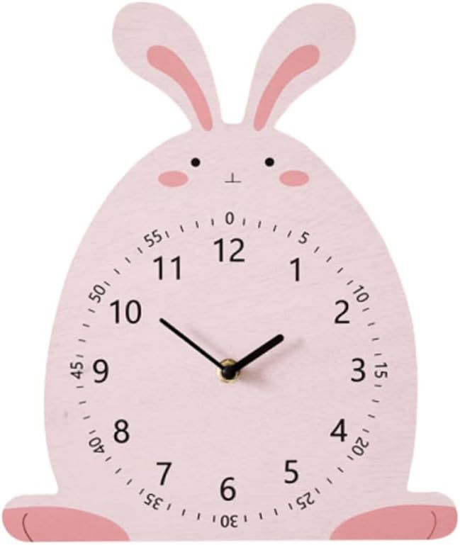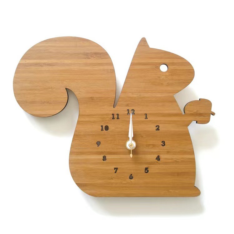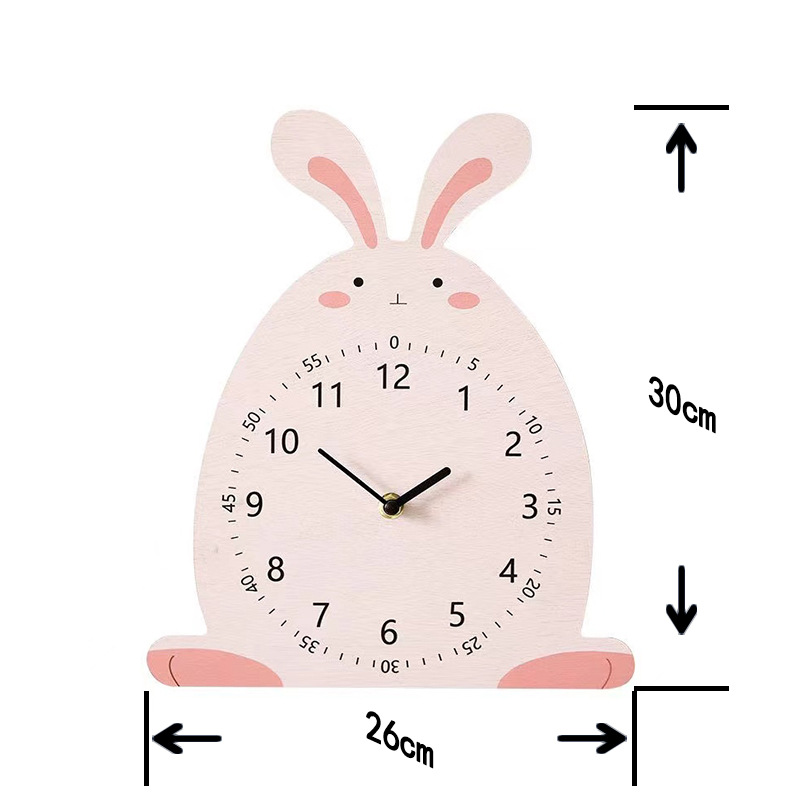 跨境兔子木质挂钟wall clock儿童房卧室静音时钟客厅装饰动物钟表