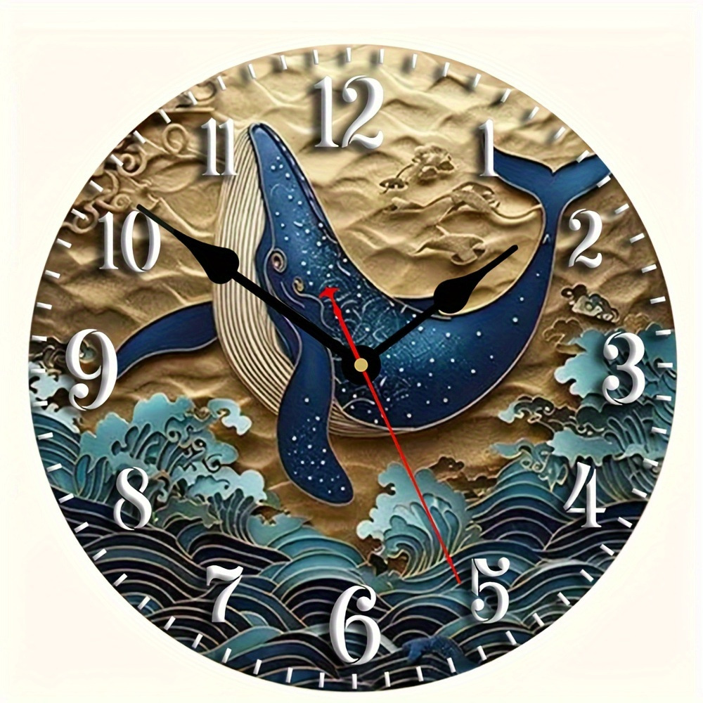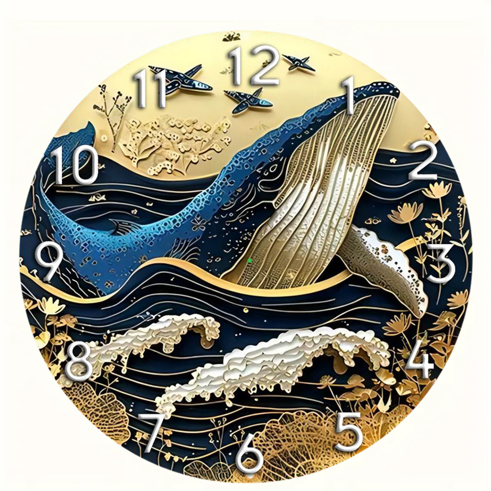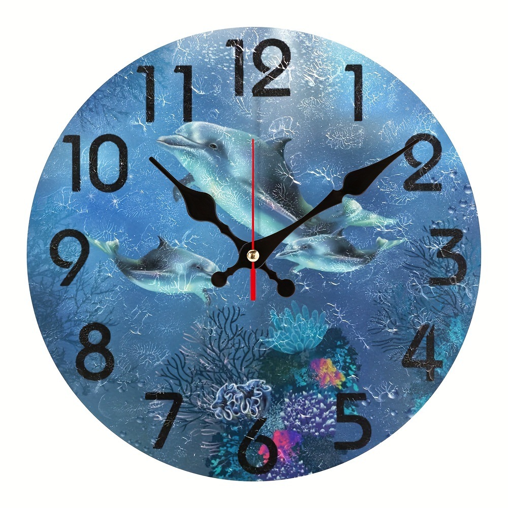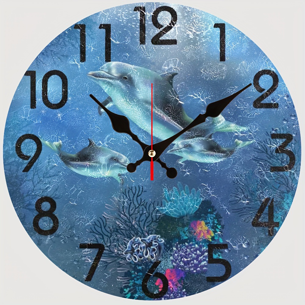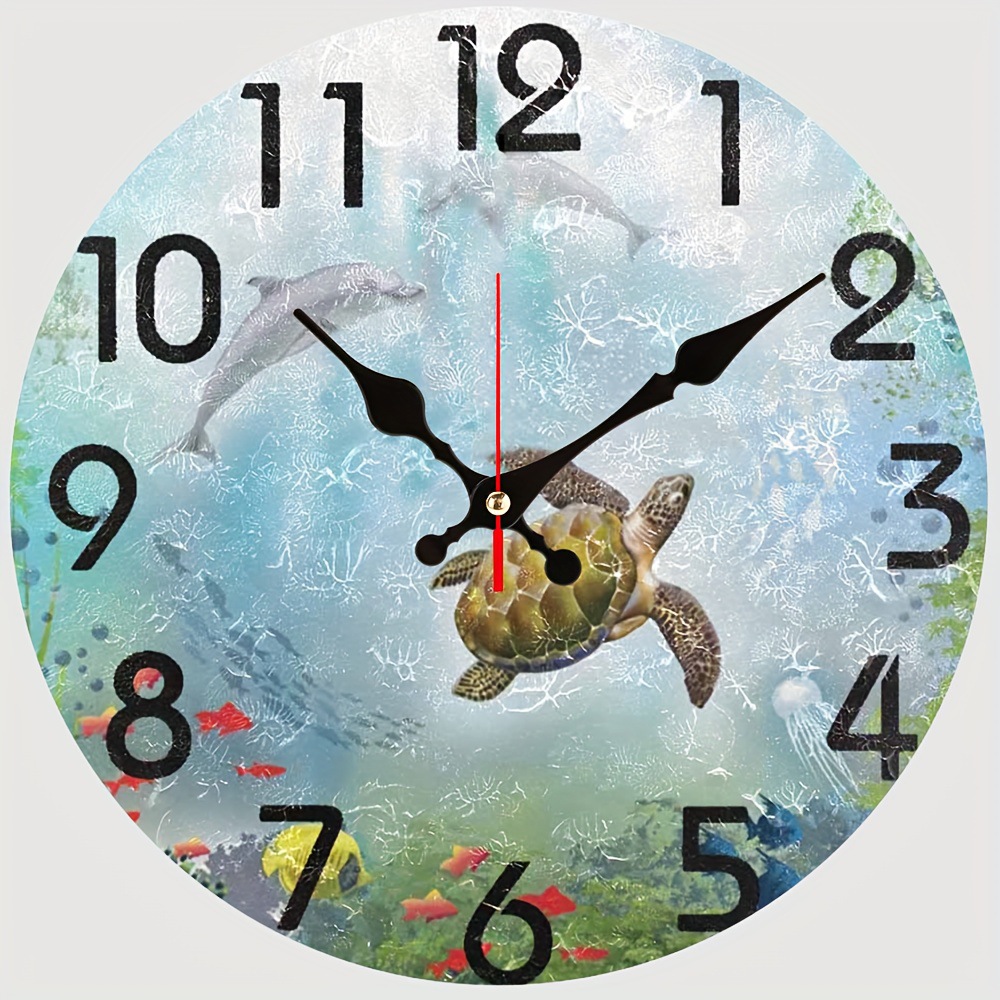 跨境海洋生物挂钟无框密度板静音时钟客厅MDF装饰钟表