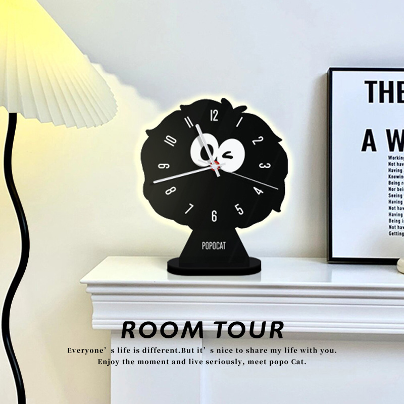 煤球卡通桌面时钟摆件客厅装饰品钟表摆放式简约家用静音卧室座钟