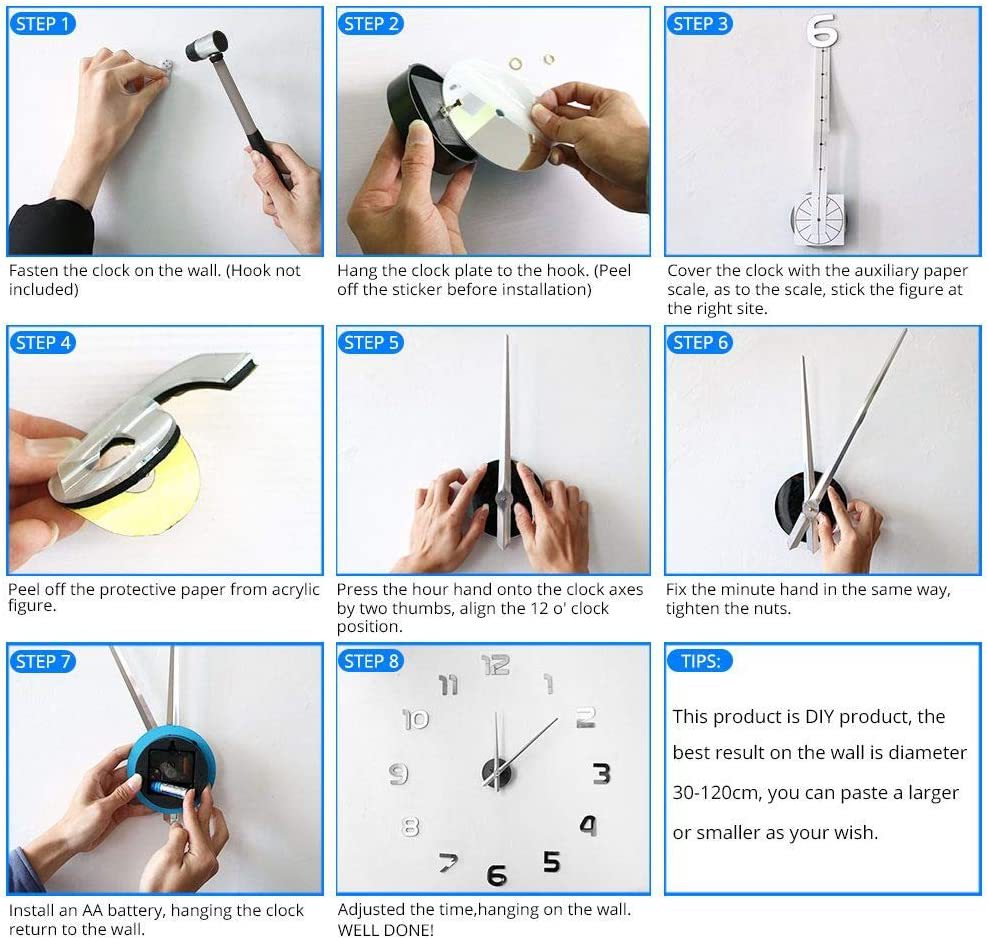 diy亚克力数字立体时钟 亚马逊跨境客厅创意挂钟 墙贴装饰钟