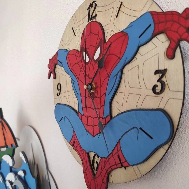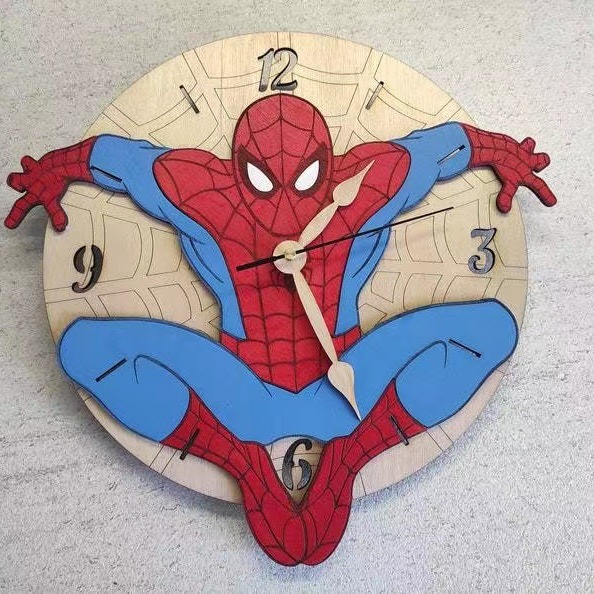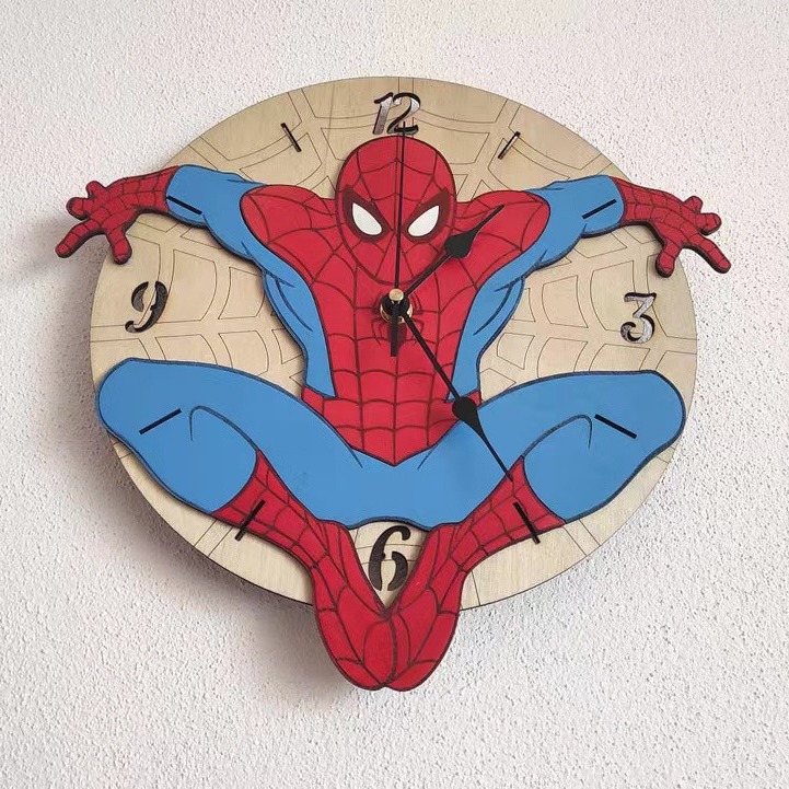 创意蜘蛛侠挂钟跨境木制静音时钟家居装饰挂墙艺术钟表