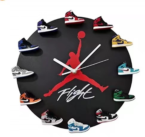 跨境爆款钟表鞋模1-12代客厅挂钟 飞人球鞋时钟挂墙
