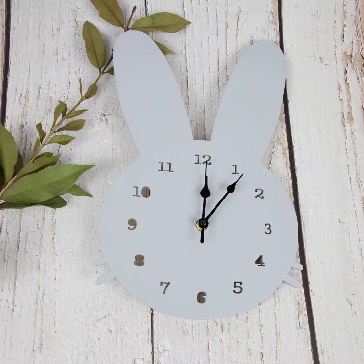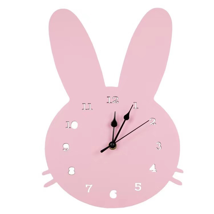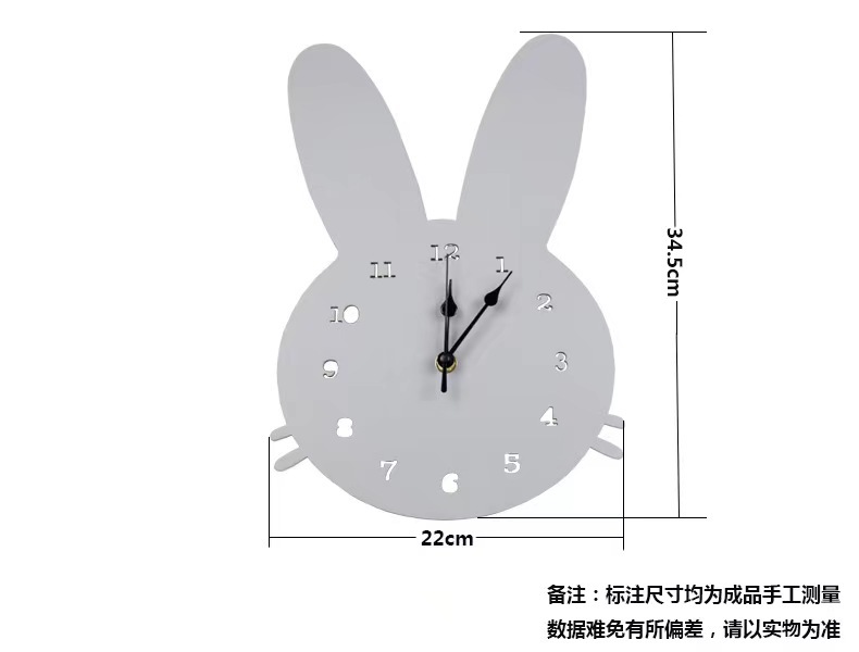 欧家居兔子时钟卡通静音钟墙面装饰儿童房时钟摄影满月道具挂件