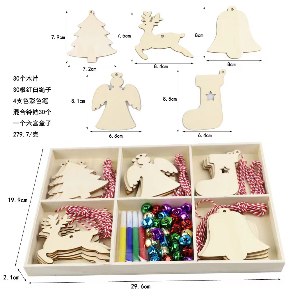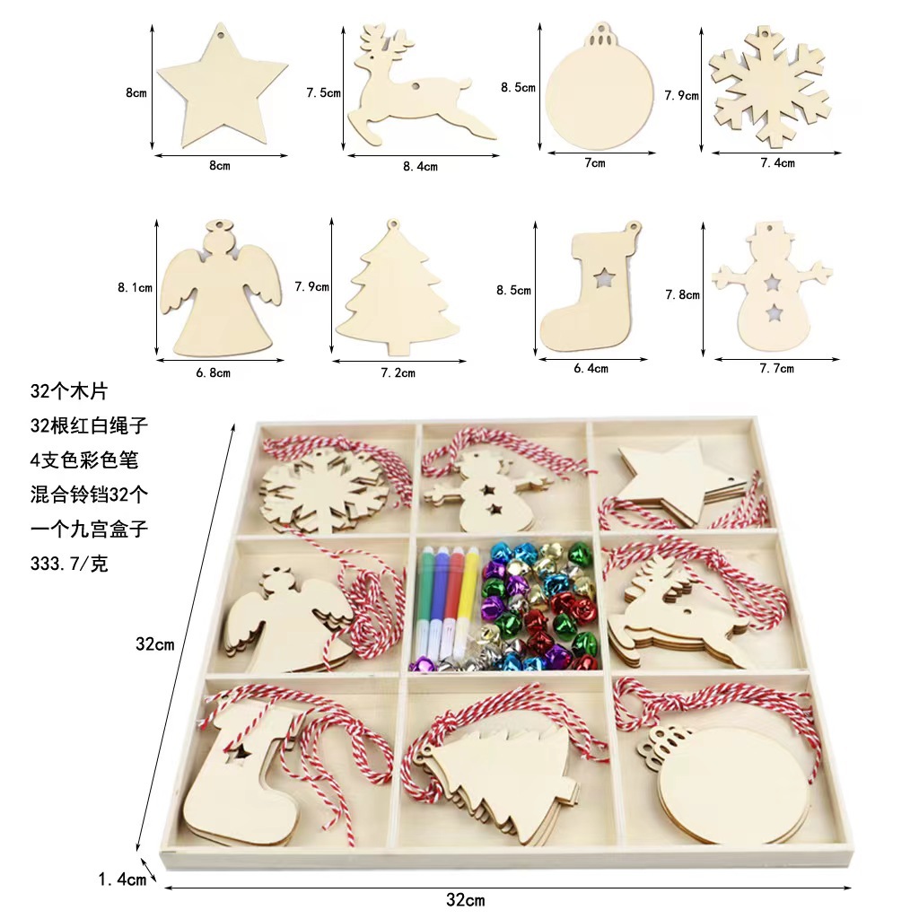 圣诞节装饰品木质挂件创意雕刻木片圣诞树挂饰礼品道具木质工艺品