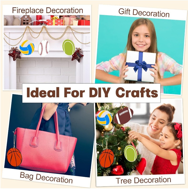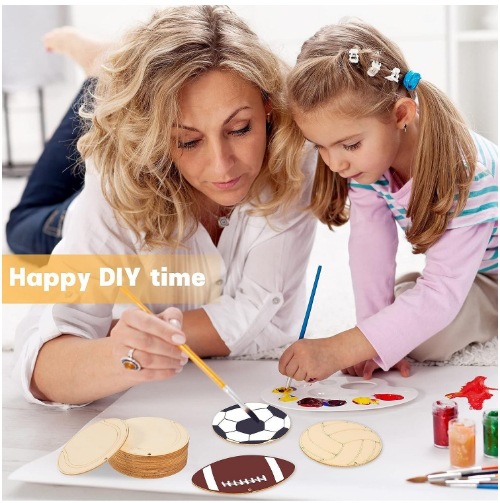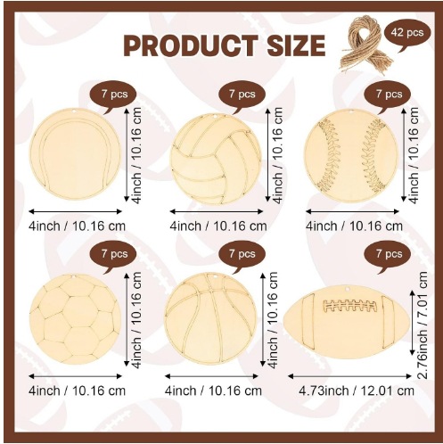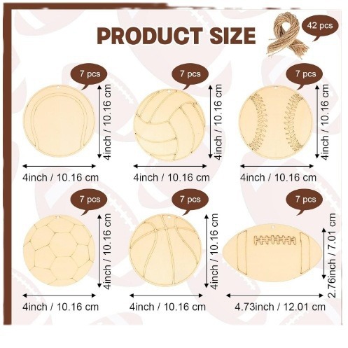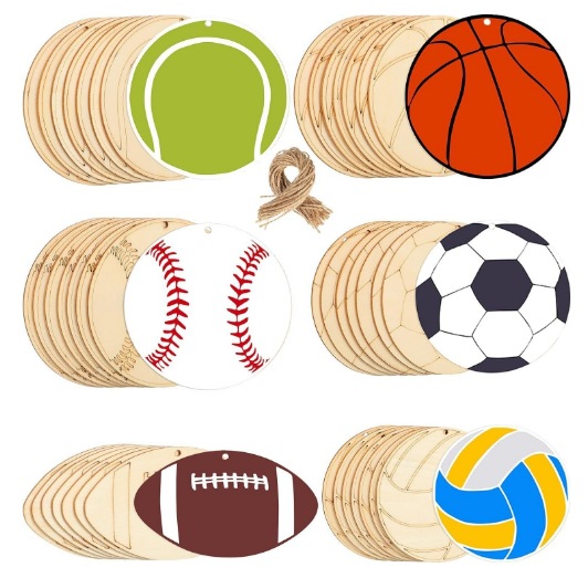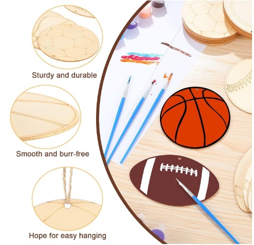 木质未完成足球排球棒球篮球橄榄球网球木片 DIY运动派对绘画装饰