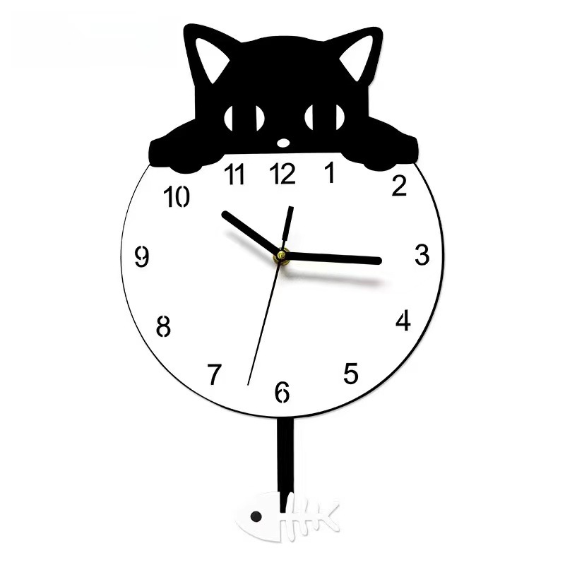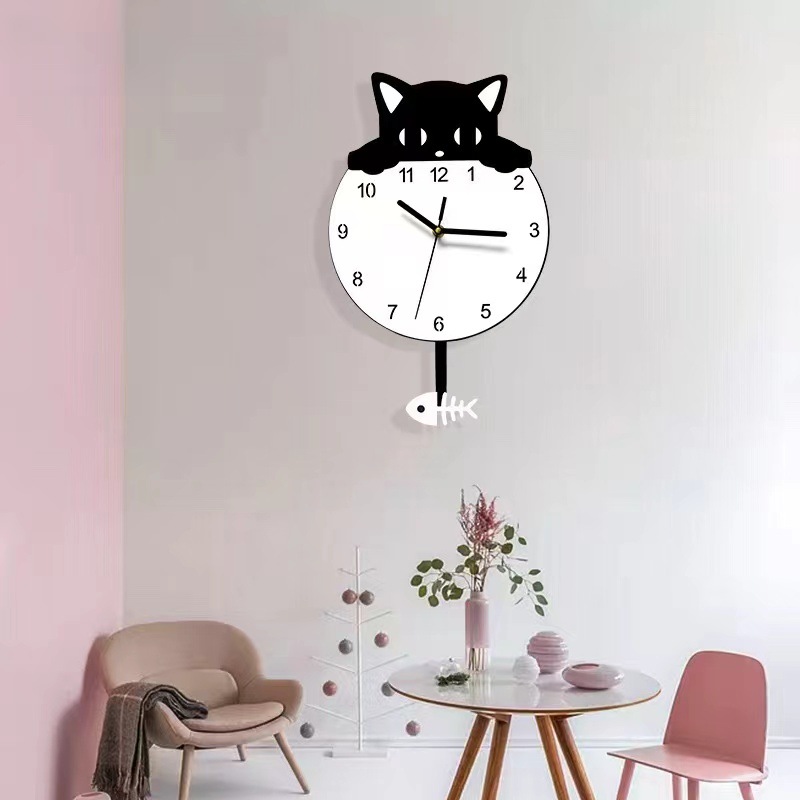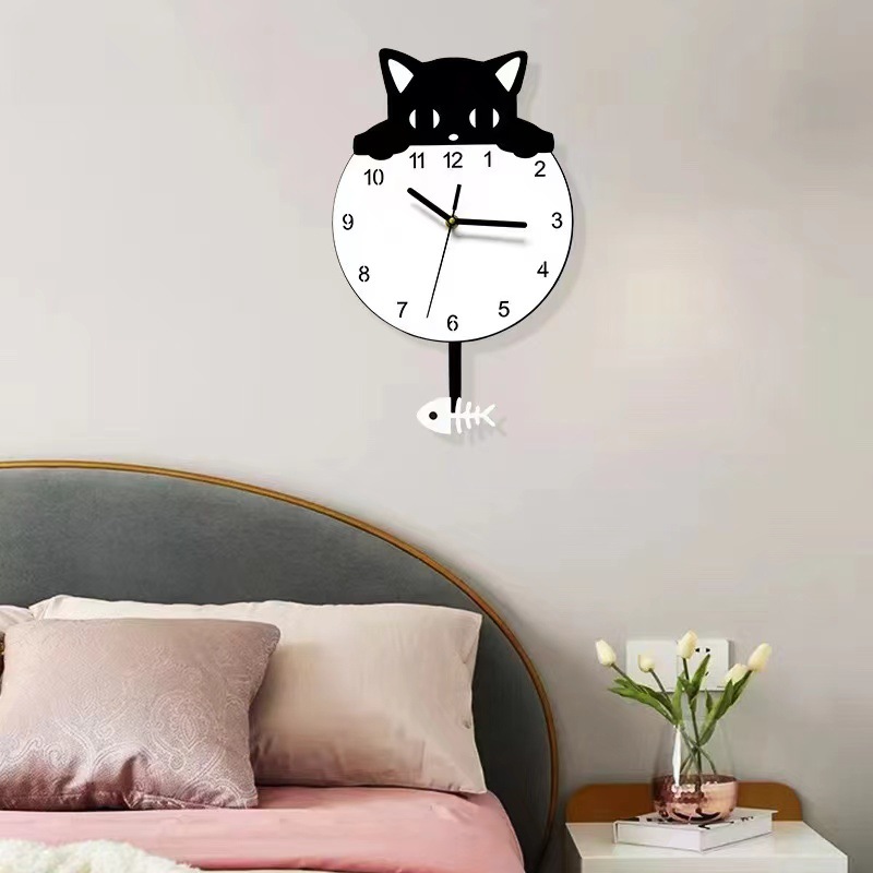 现代简约创意儿童摇摆挂钟客厅壁挂装饰时钟猫咪壁钟