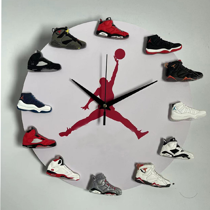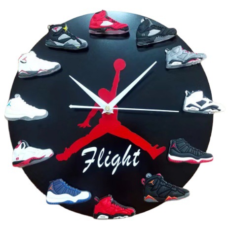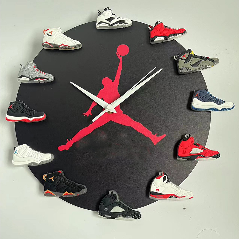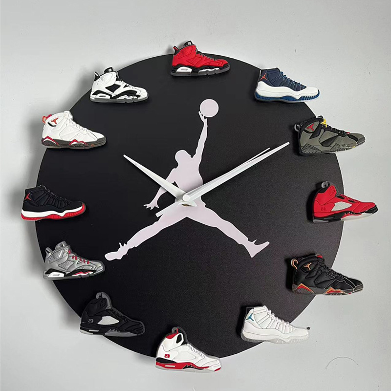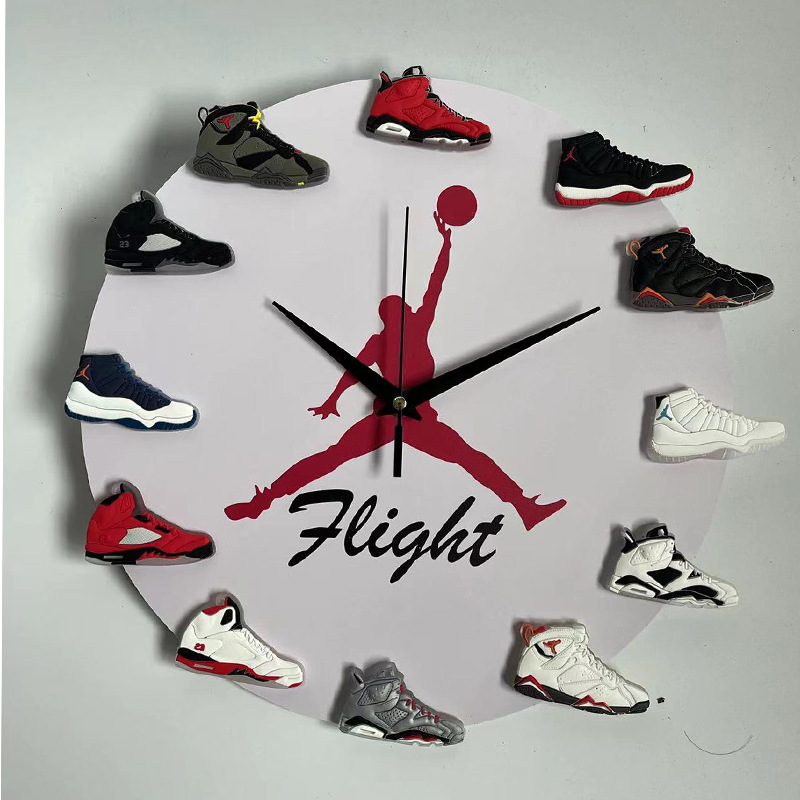 aj时钟夜光led灯乔丹飞人挂钟aj1-12代立体3d鞋子钟表