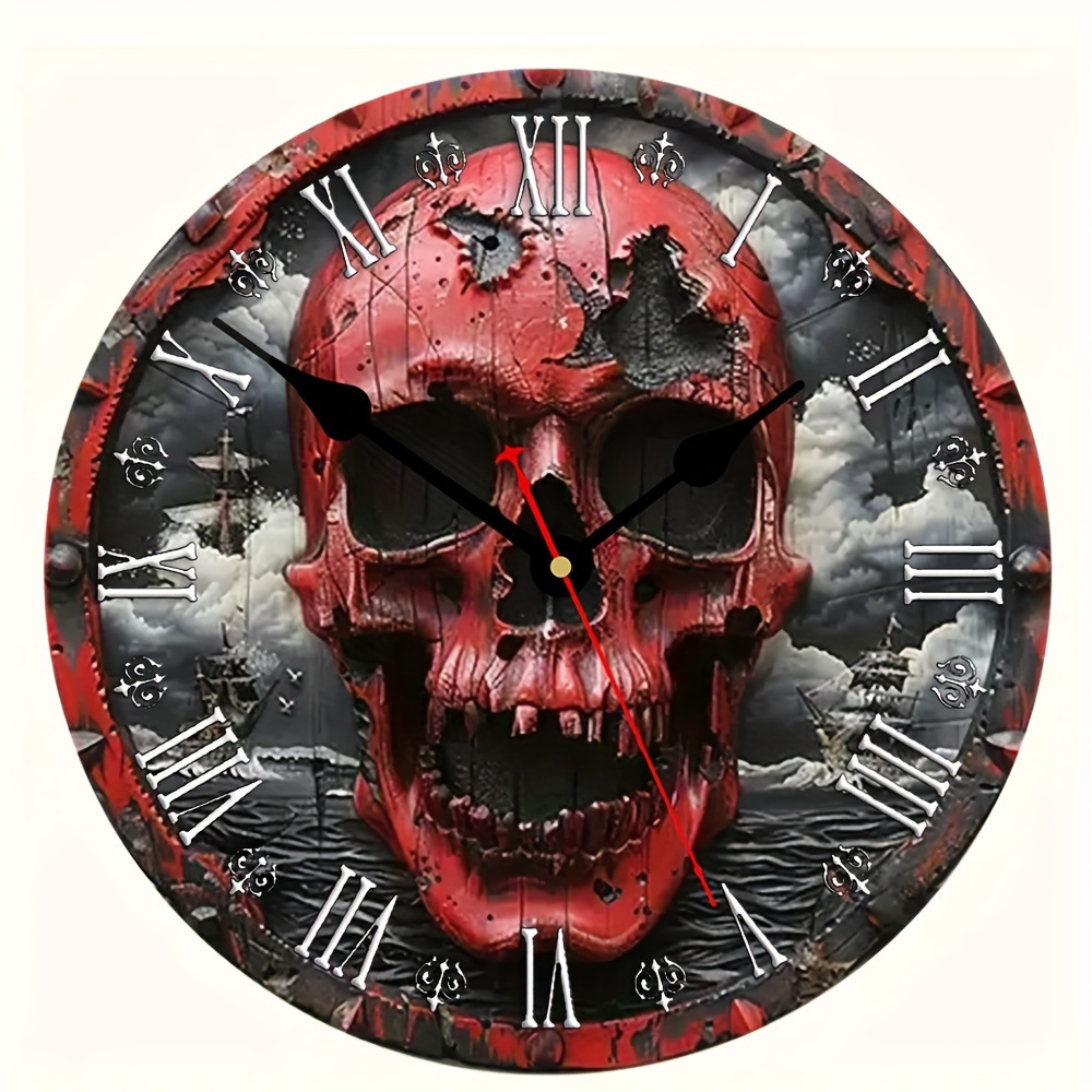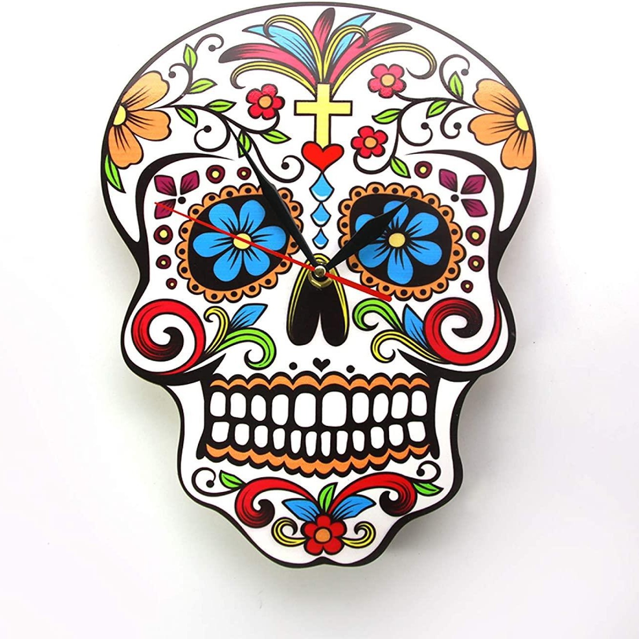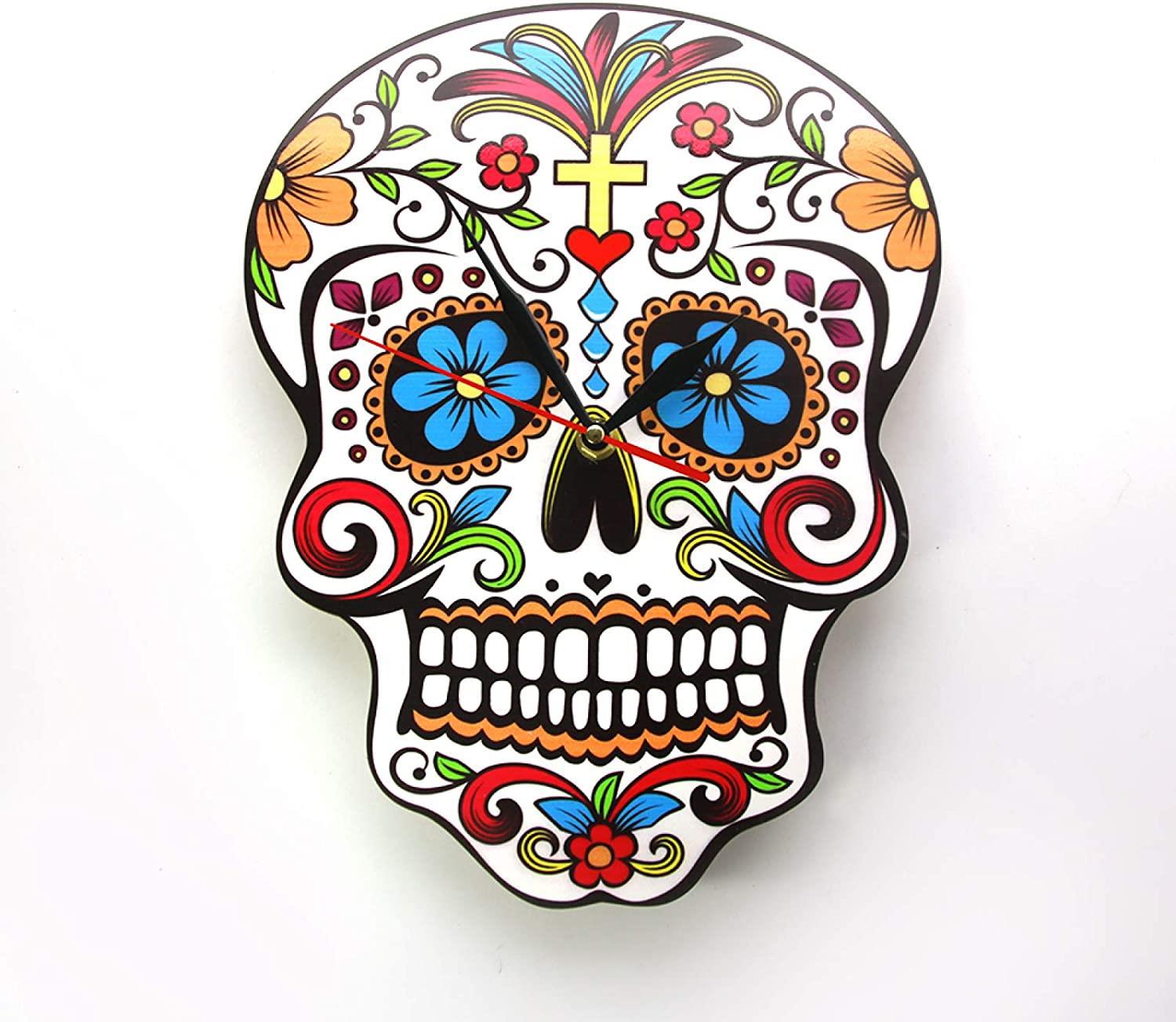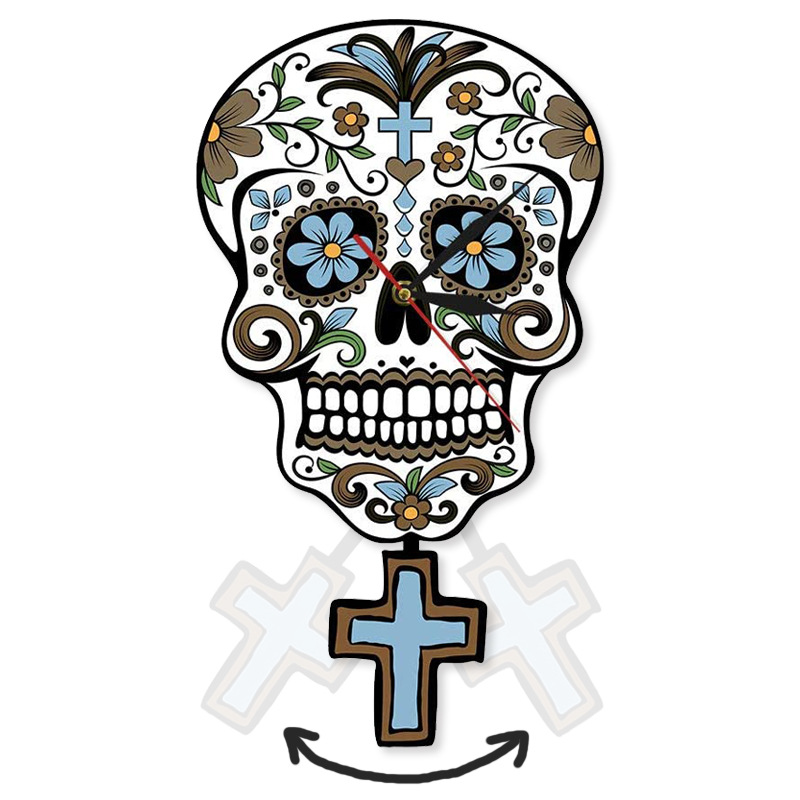 跨境骷髅静音挂钟万圣节摇摆石英钟表墨西哥死亡日家居装饰墙钟