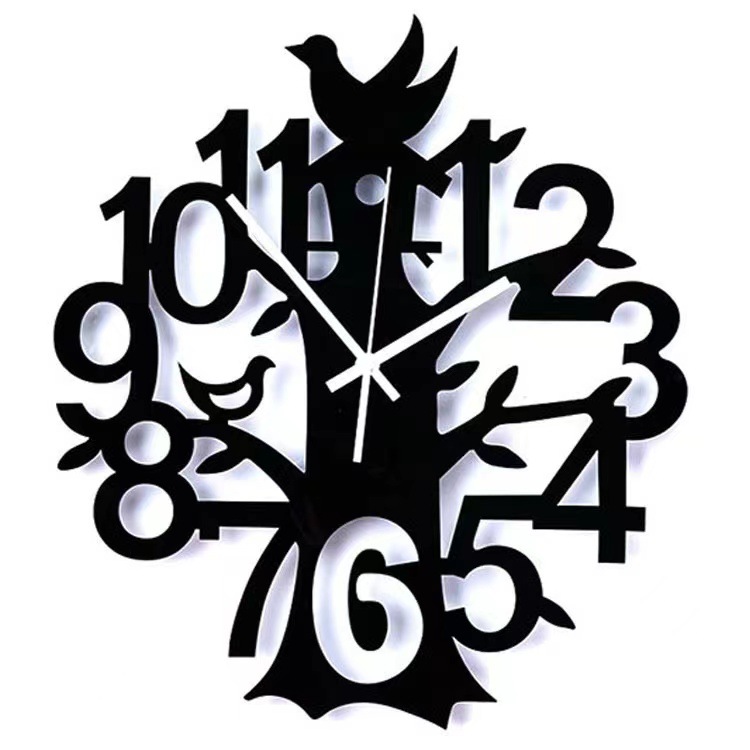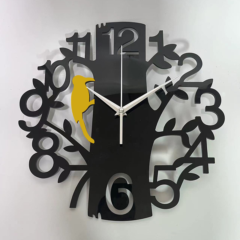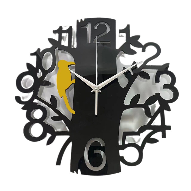 25cm小鸟树形时钟钟表亚克力钟创意挂钟 客厅书房卧室装饰钟表