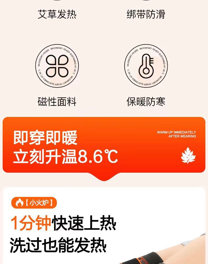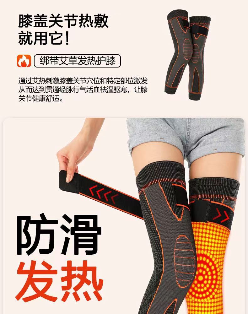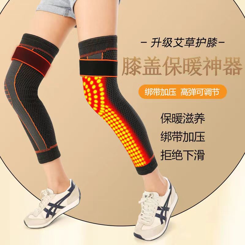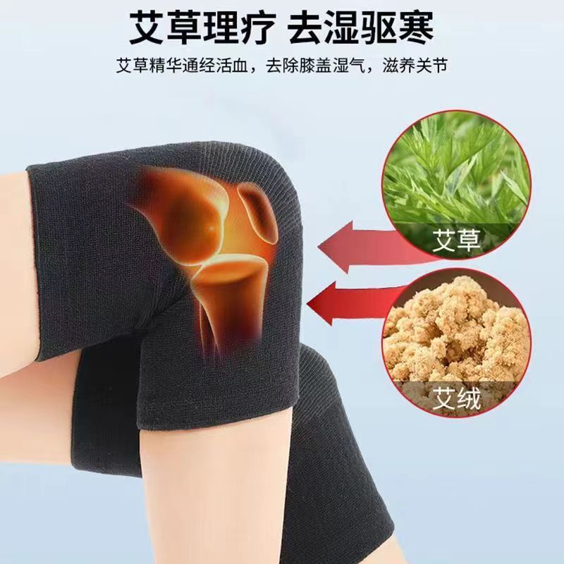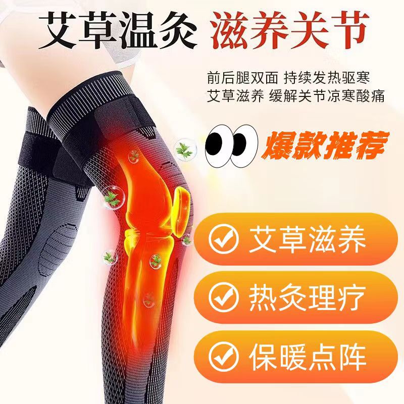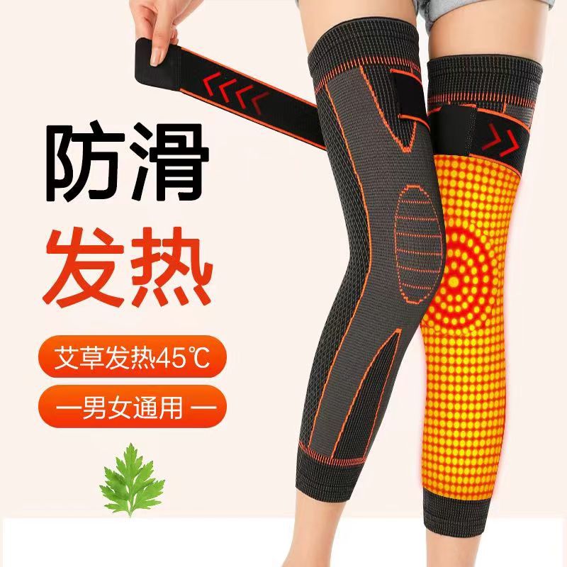 艾草自发热护膝膝盖绑带防滑保暖中老年男女款加长加厚关节护腿套