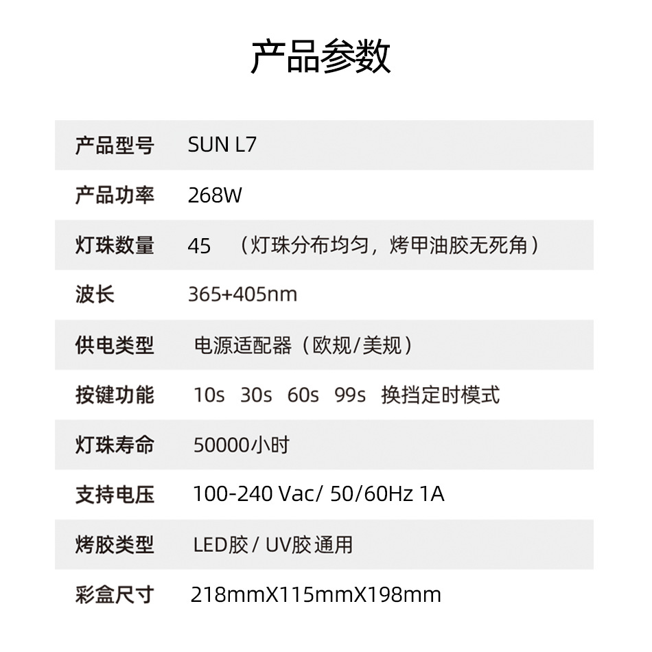 SUNL7美甲灯贴钻方形智能烤灯288W大功率甲油胶光疗灯烘甲器烤灯
