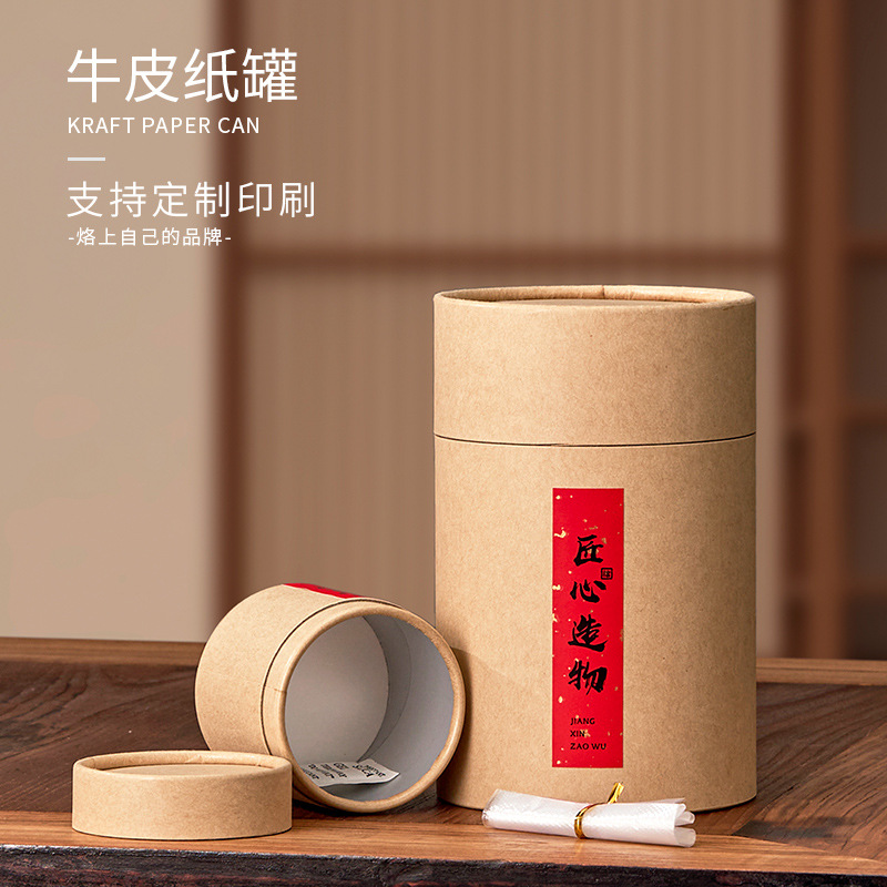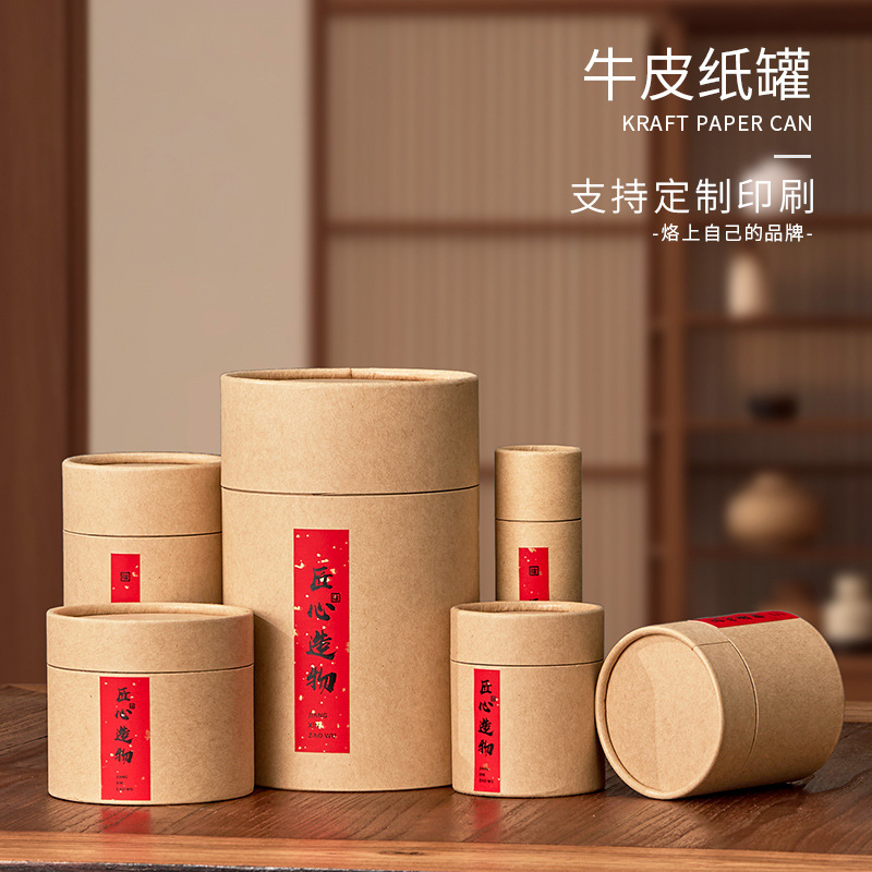 小号大号通用茶叶罐圆形牛皮纸罐红茶绿茶茶叶包装空盒厂家现货