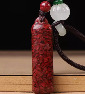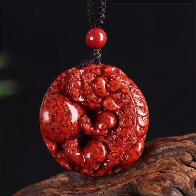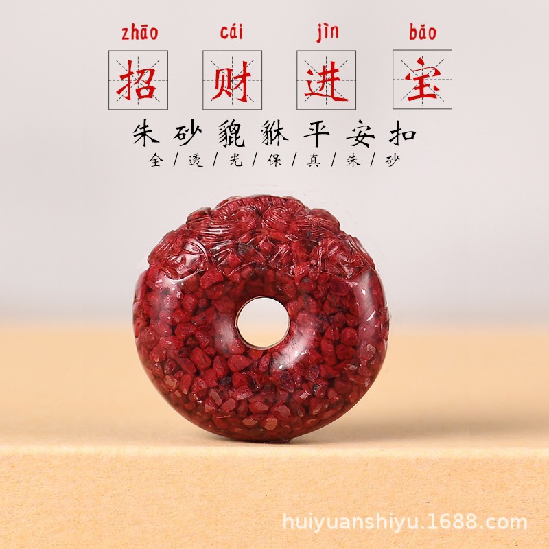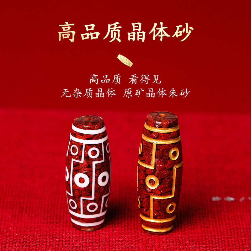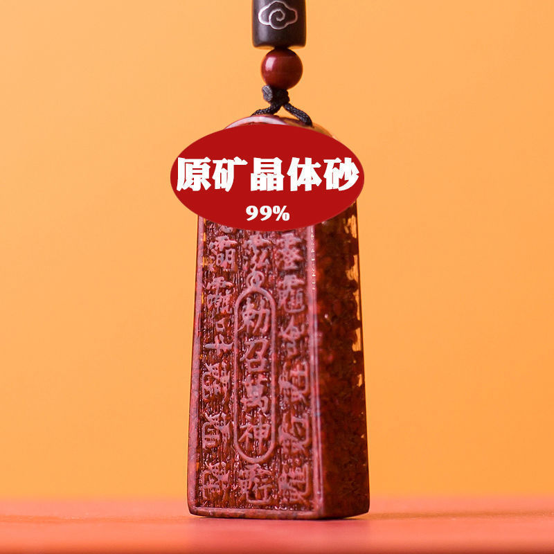 天然原矿高含量晶体砂无事牌吊坠平安扣九眼天珠朱砂挂件