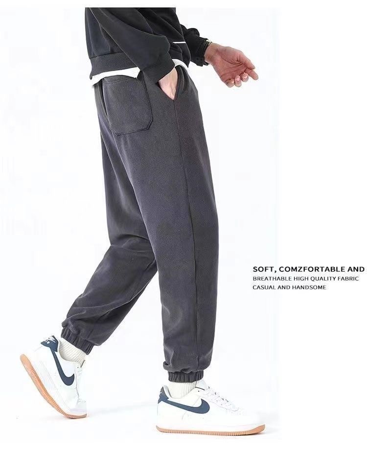 冬季大码休闲裤男士双面加绒裤子运动束脚长裤保暖加绒卫裤杂款