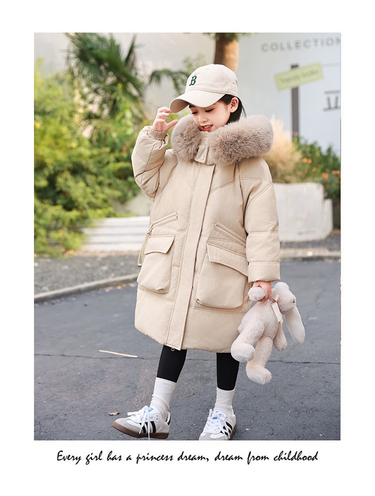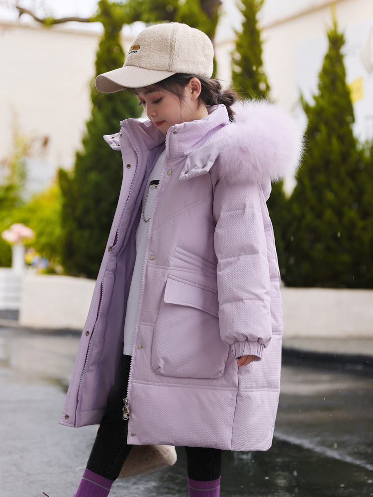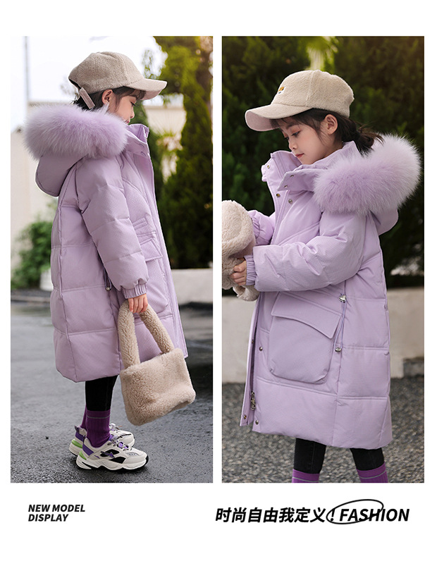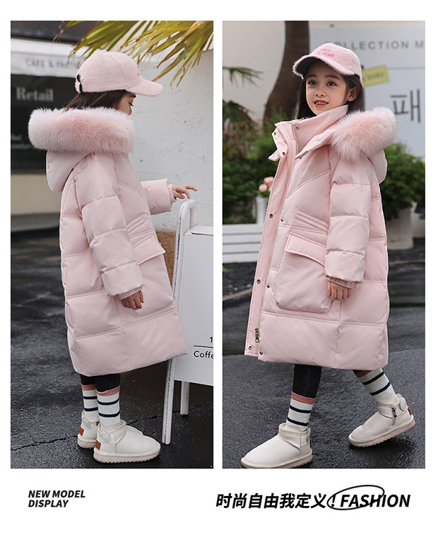 中大童羽绒服女童新款韩版儿童中长款洋气加厚白鸭绒冬季棉服外套