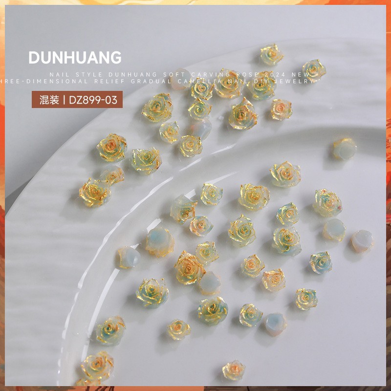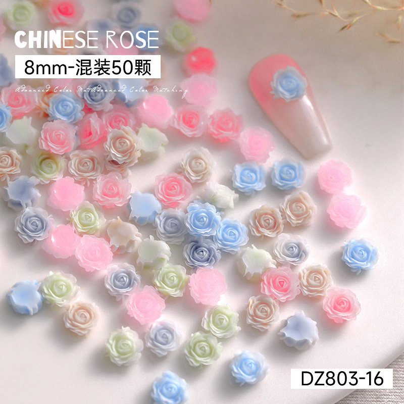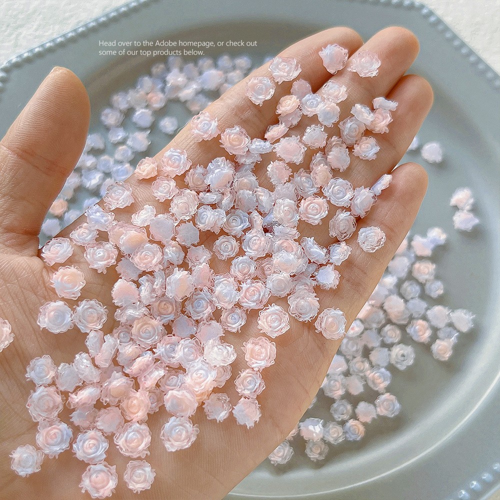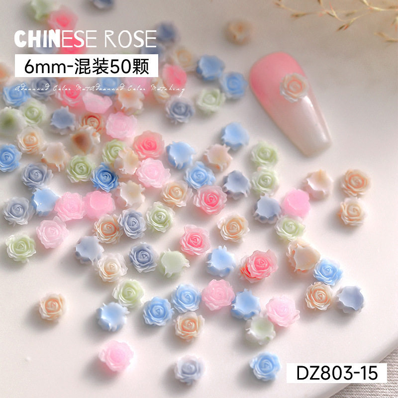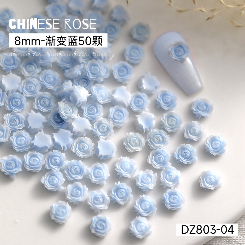 新款蓝粉玫瑰花园珍珠布艺蝴蝶结叶子美甲饰品指甲小配件混装批发