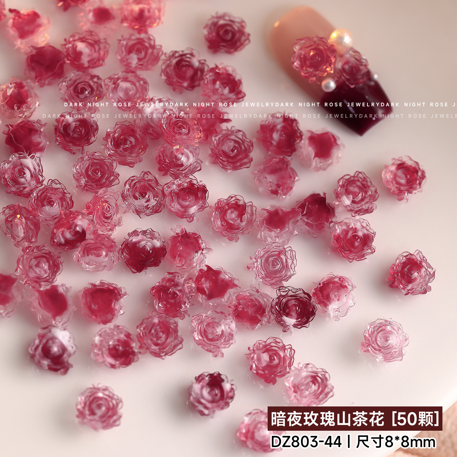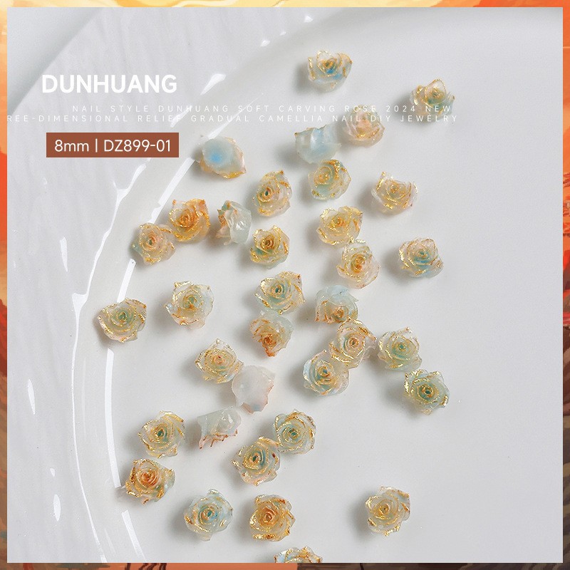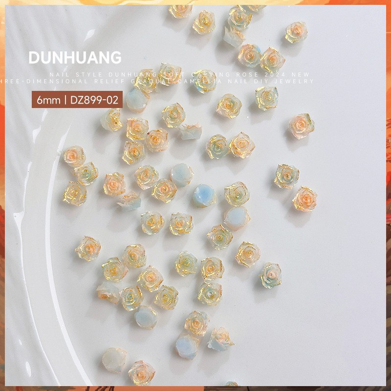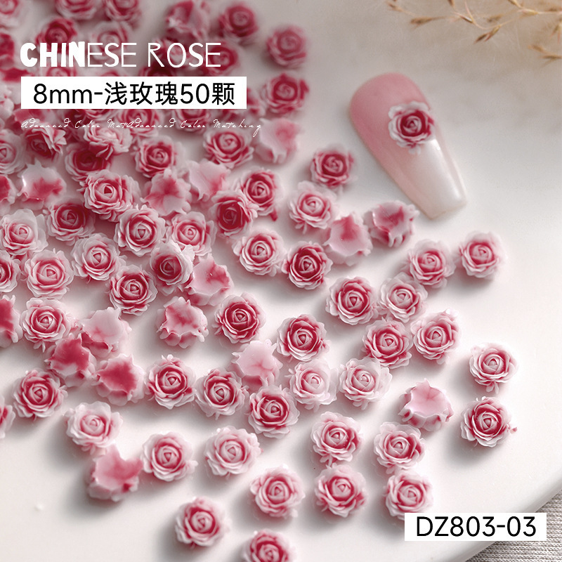 新款蓝粉玫瑰花园珍珠布艺蝴蝶结叶子美甲饰品指甲小配件混装批发