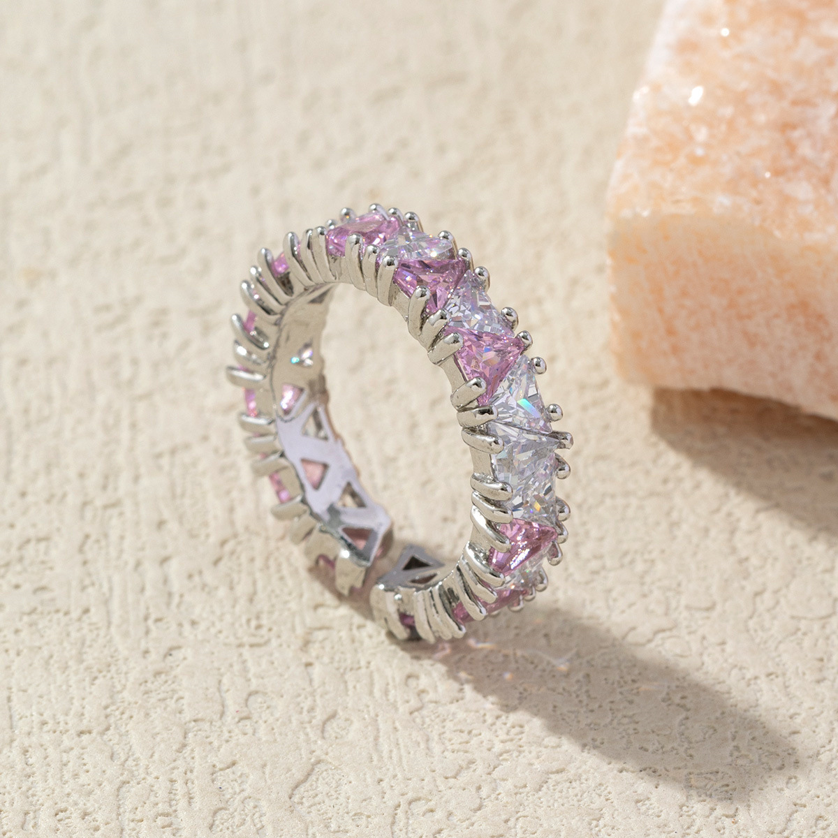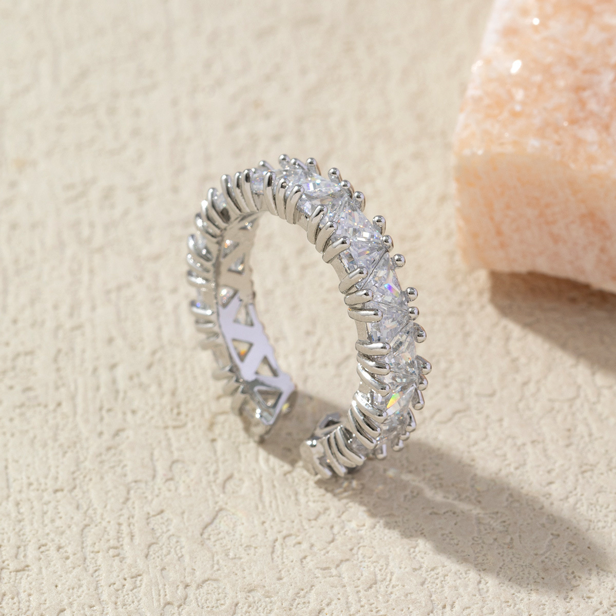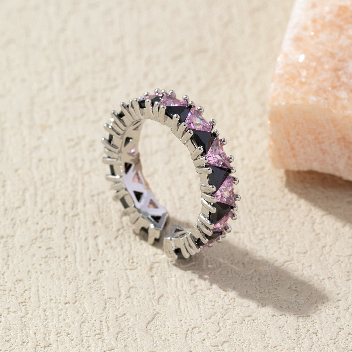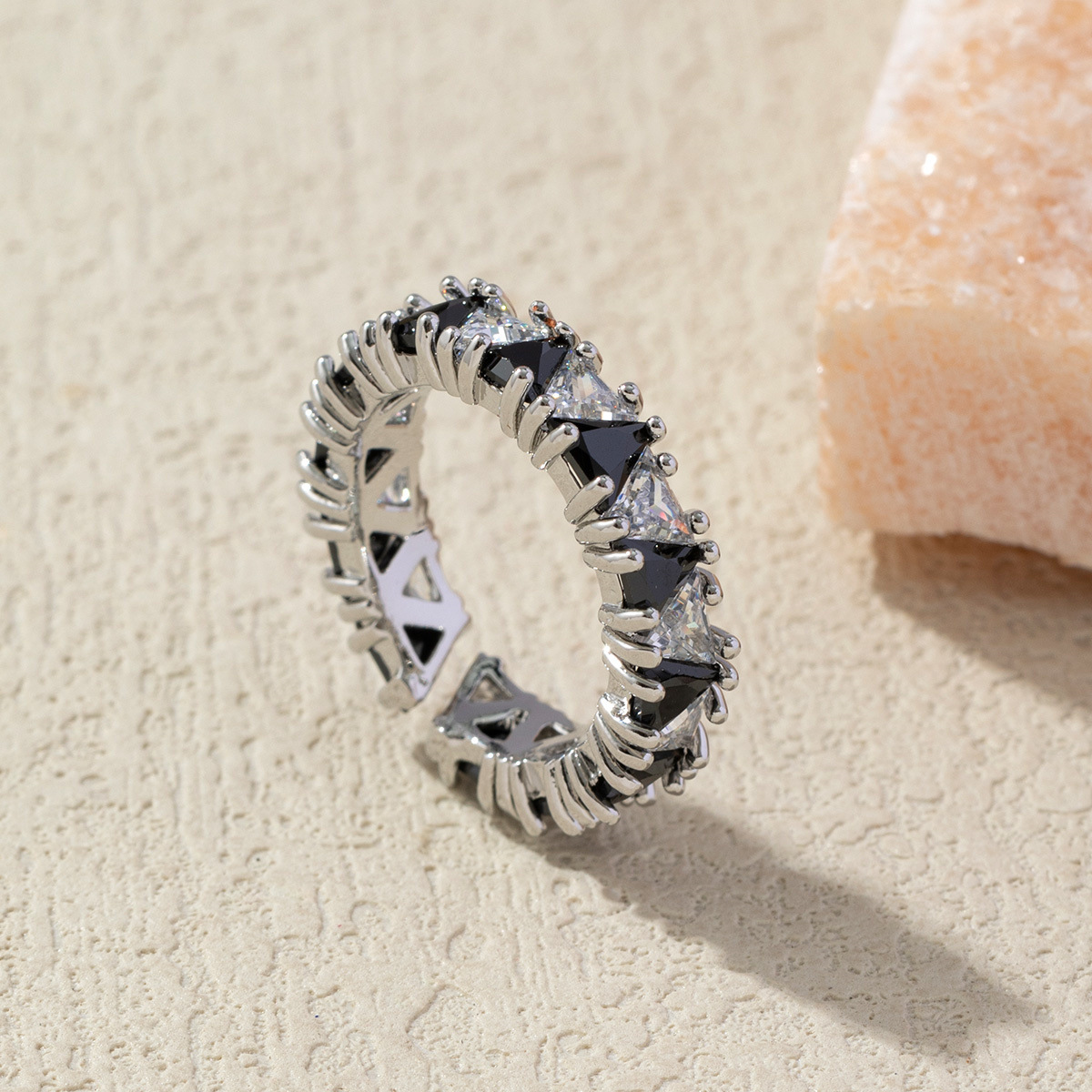 跨境韩式三角形锆石戒指铜镀18k金轻奢小众设计几何开口食指戒女