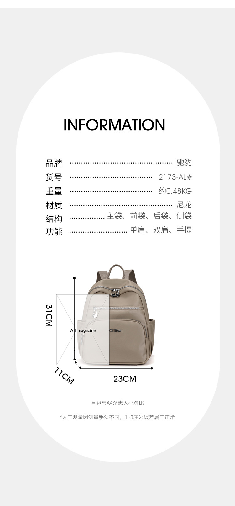 大容量女士旅行包轻便防水尼龙布包驰豹新款双肩包多隔层学生书包