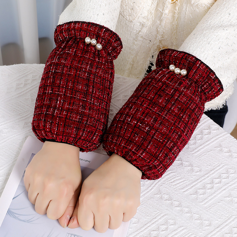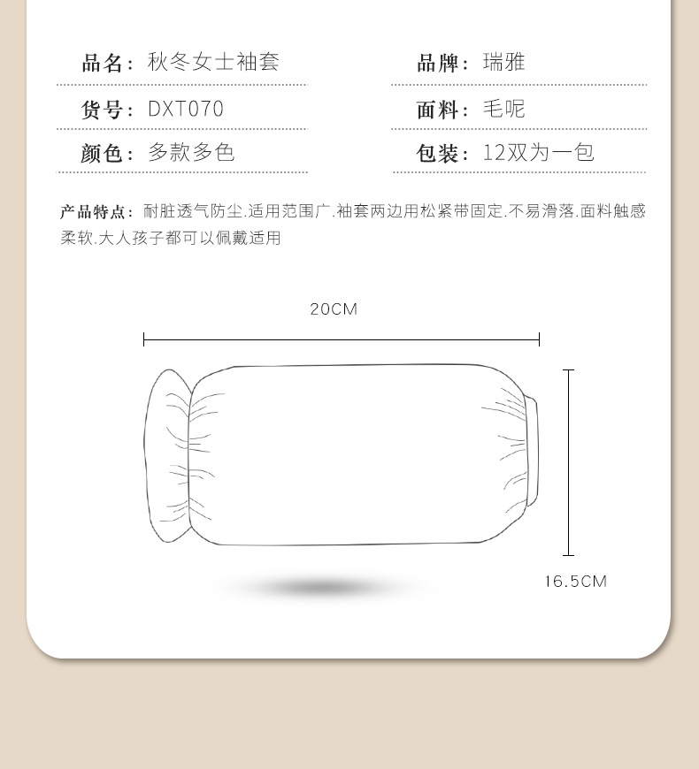 小香风加厚短款粗毛呢防污护袖套女工作学生耐脏羽绒服套袖成人冬