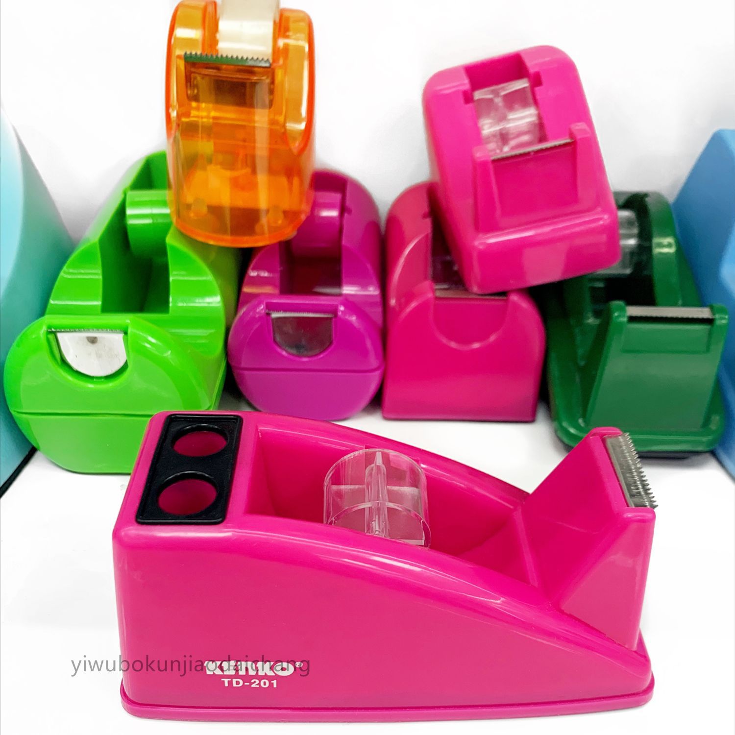 玫红 绿色 蓝色小号文具座胶带座切割器 粘胶器 可插笔筒