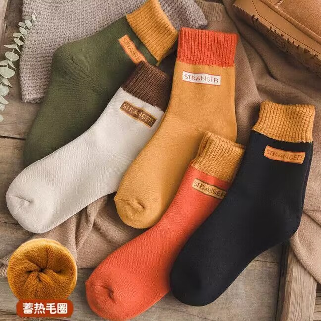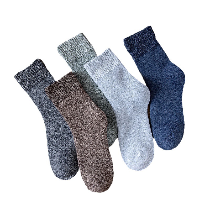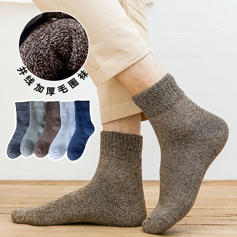袜子男士冬季中筒袜羊毛袜纯色男袜女袜长筒袜保暖加绒加厚毛圈袜