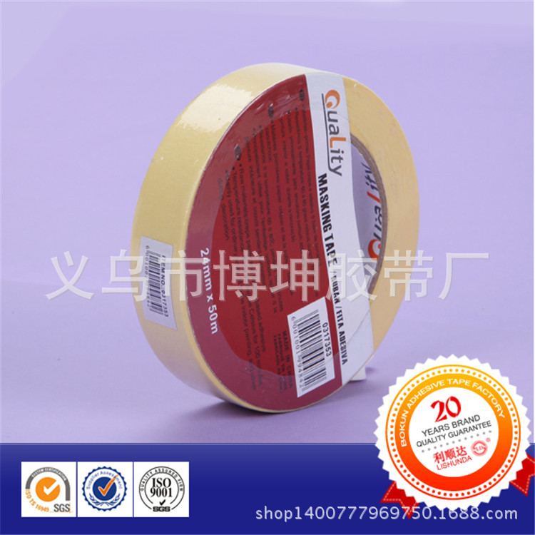 美纹纸胶带广泛用于汽车、五金、电子、电器等行业的烤漆、固定、保护适用于建筑业室内装修,也可用于喷漆时的掩蔽。可分为一般用及耐高温用,通常使用在电子工业上的电阻,电容,半导体及喷烤漆或包装用途等